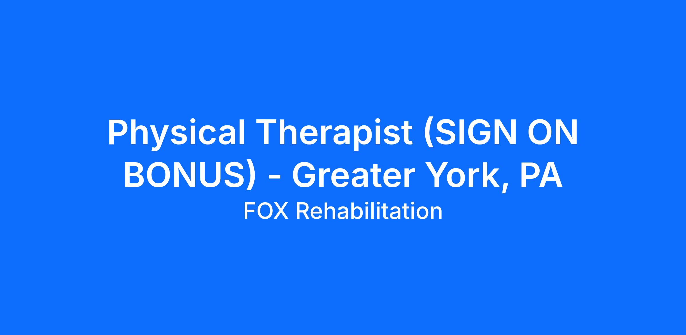 Fox Rehabilitation is an equal opportunity employer. We celebrate diversity and are committed to creating an inclusive environment for all employees.