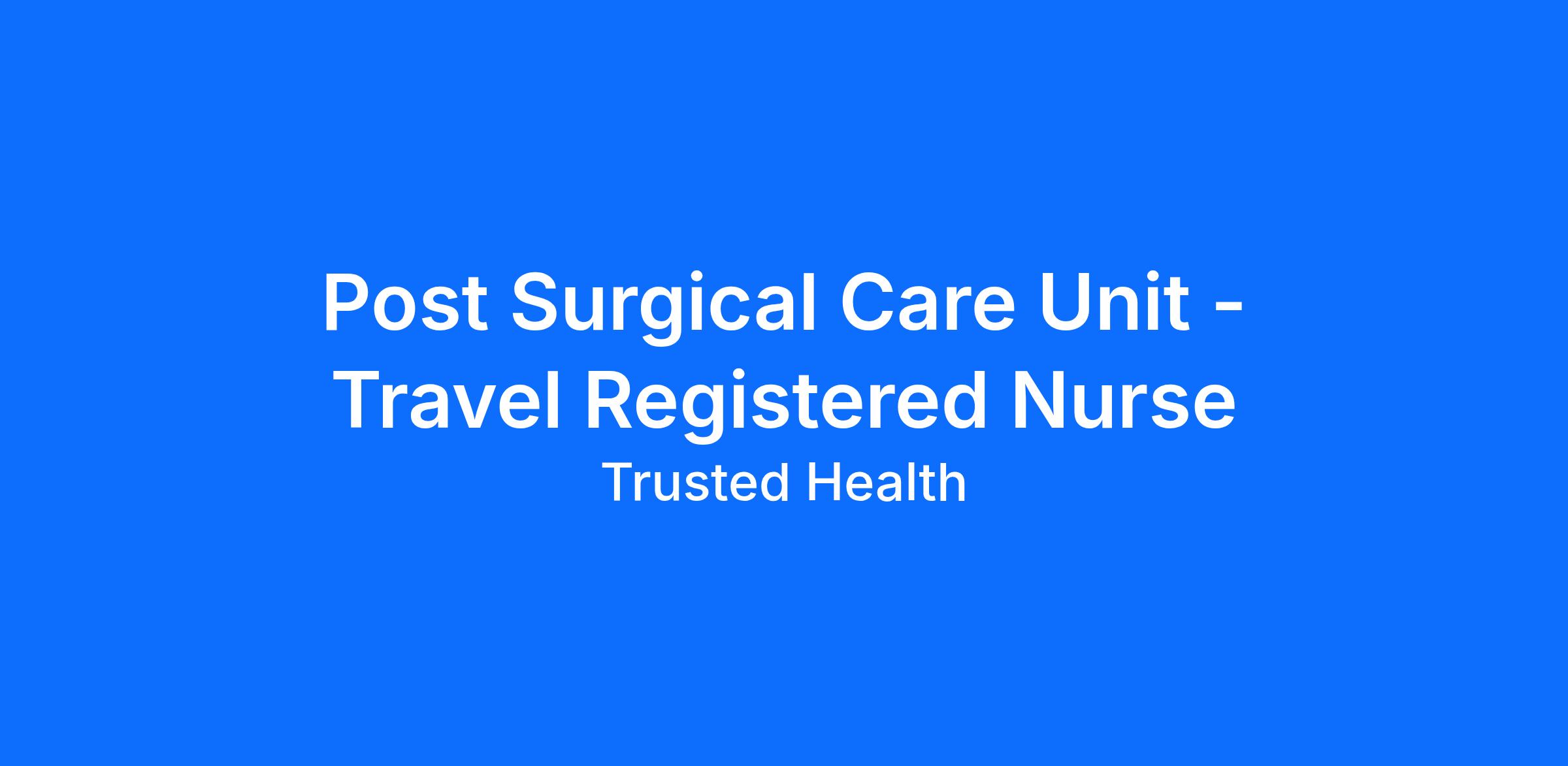 Trusted is seeking an experienced nurse for this exciting travel nursing assignment. Trusted has streamlined the travel nursing experience by enabling nurses to apply directly to jobs without the need for recruiters. This unique approach provides more transparency, eliminates pesky calls from recruiters, and puts more money in your pocket. Join the thousands of nurses across the country who have already made the switch to a more modern way to work.
