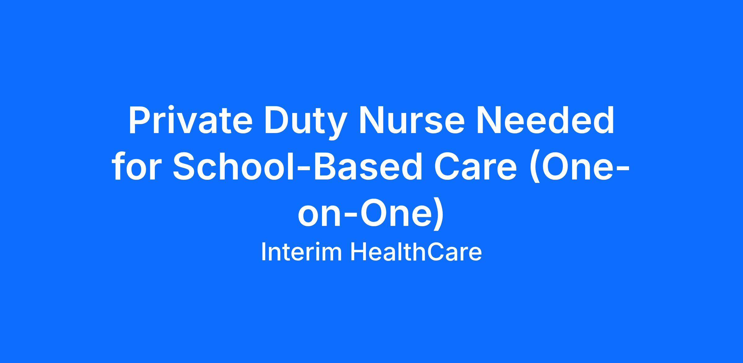 Private Duty Nurse Needed for School-Based Care (One-on-One)- 9am to 3pm