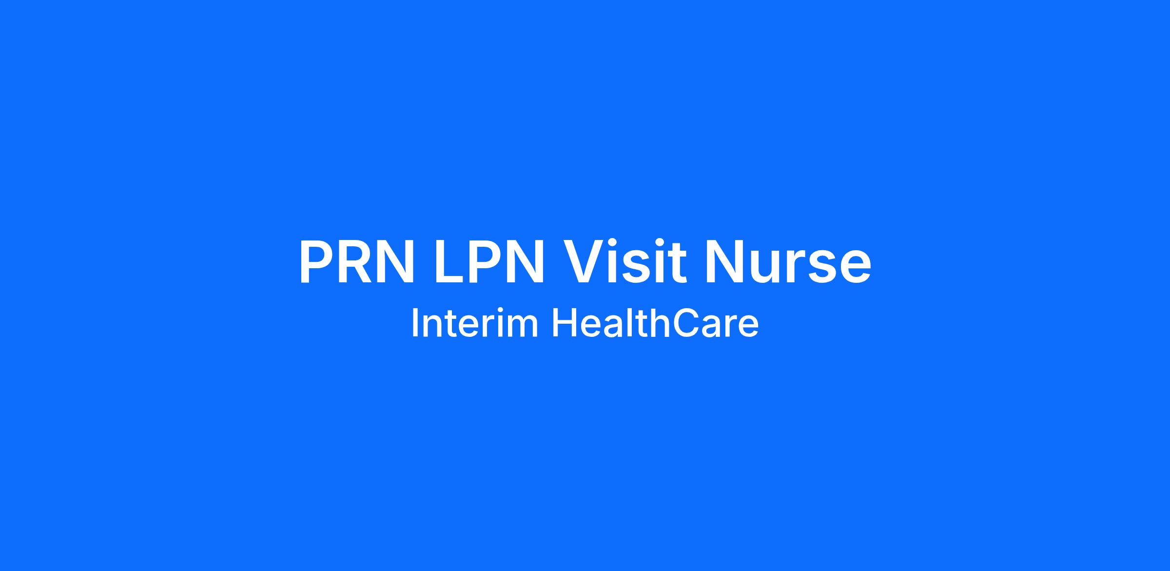 As a Licensed Practical Nurse (LPN) Visit Nurse you will be called to care when you’re needed most. As part of Interim Healthcare Home Health, you’ll support a full range of patient services to bring comfort and dignity to our clients. (10 to 15 vits per week - Must be willing to travel surrounding areas)