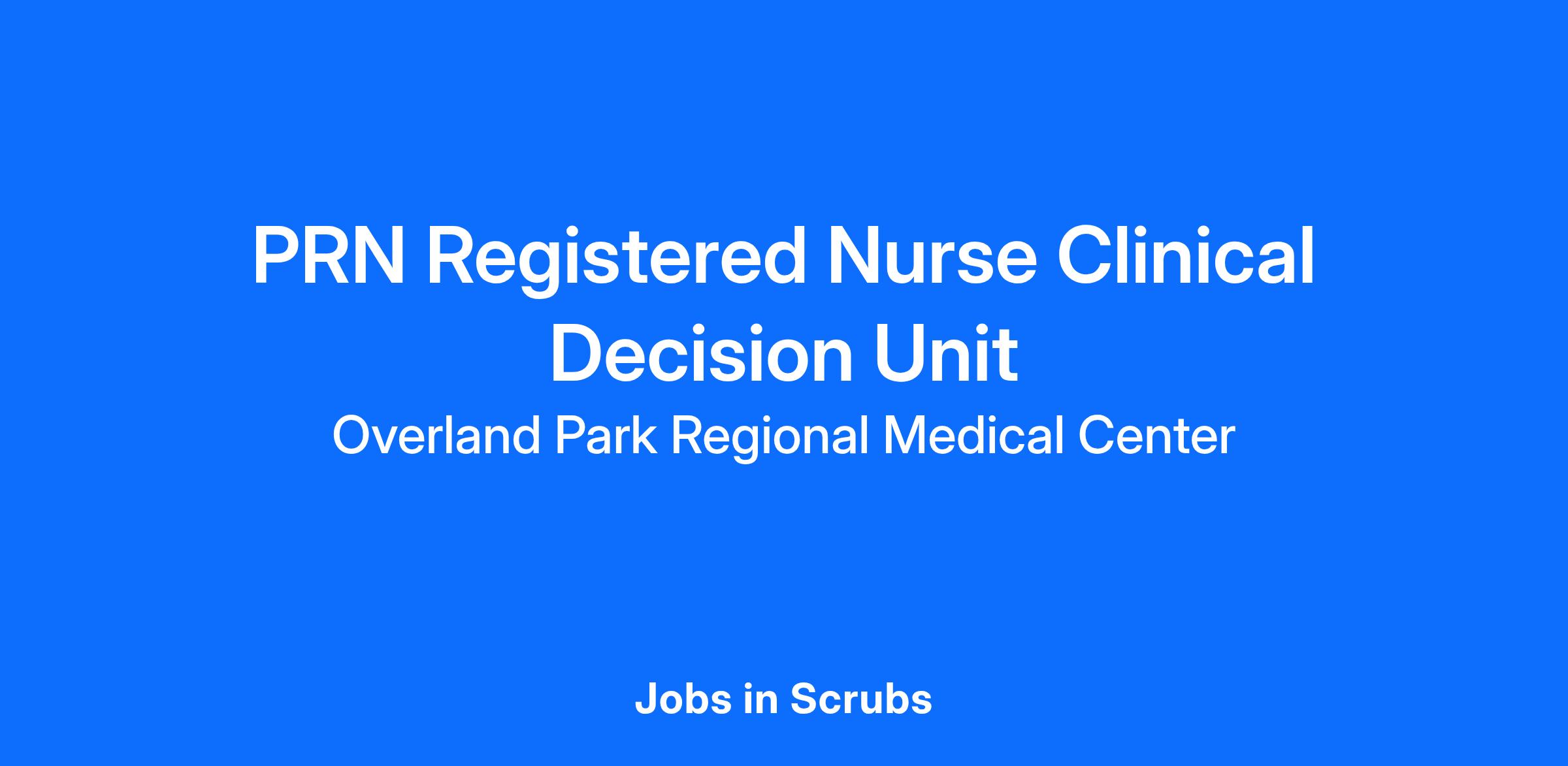 Do you have the PRN career opportunities as a(an) PRN Registered Nurse Clinical Decision Unit you want with your current employer? We have an exciting opportunity for you to join Overland Park Regional Medical Center which is part of the nation's leading provider of healthcare services, HCA Healthcare.