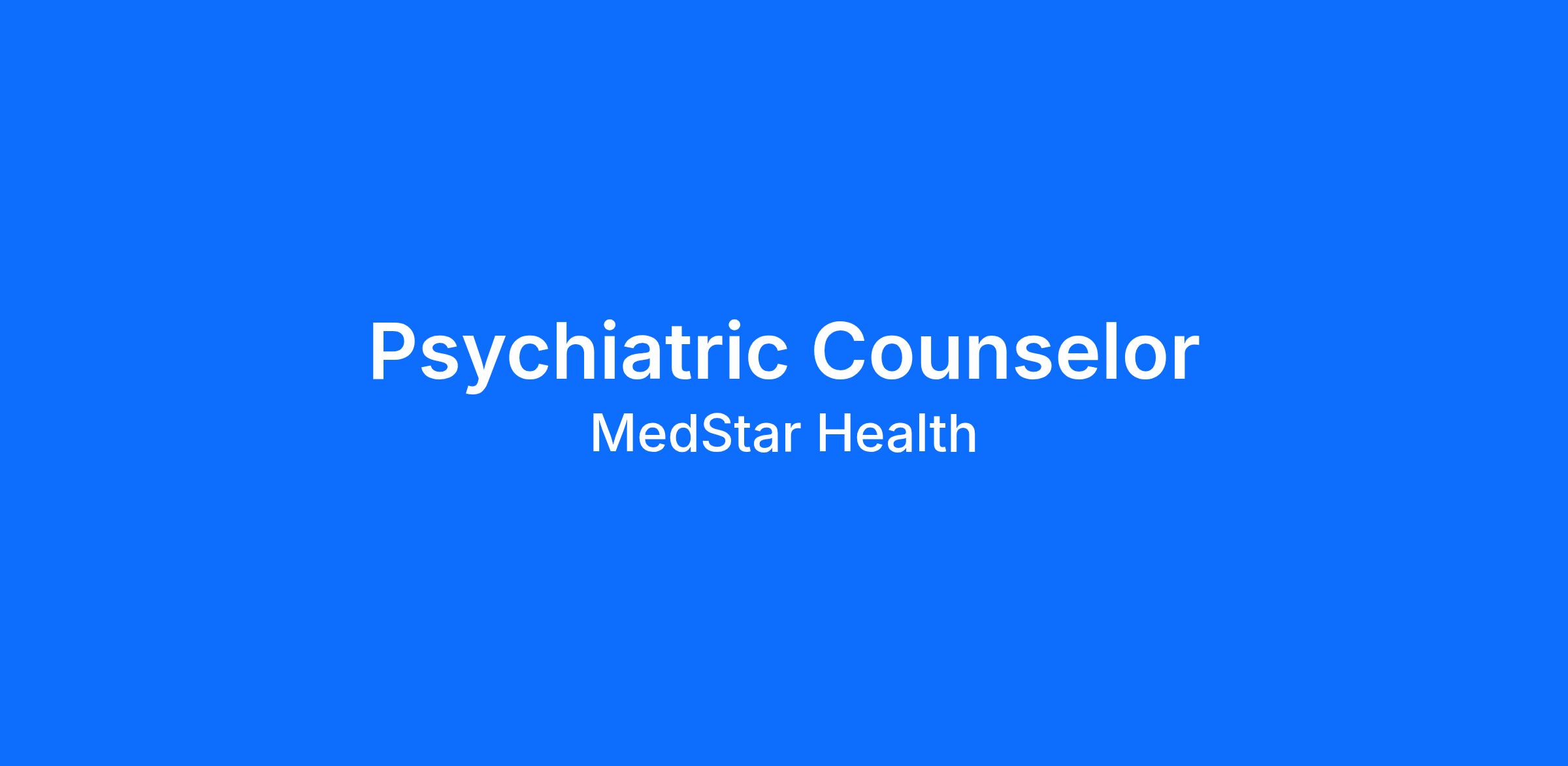 MedStar Health is looking for a Psychiatric Counselor to join our team! The ideal candidate will provide therapeutic interventions and make independent clinical decisions about patient rehab skills.