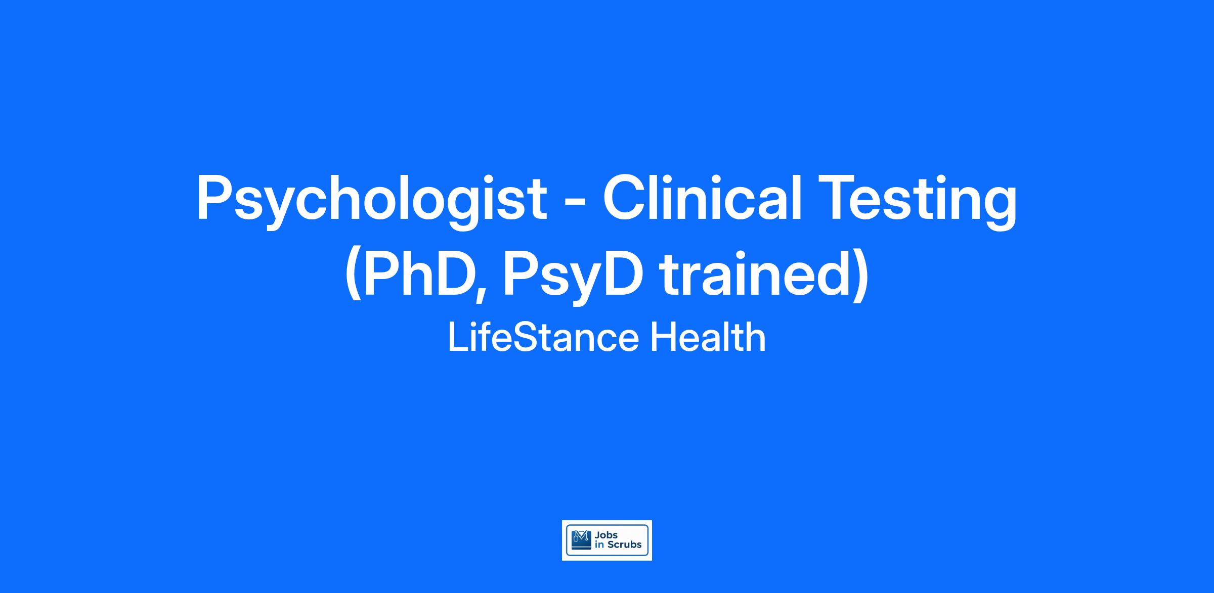 Psychologist - Clinical Testing (PhD, PsyD trained)