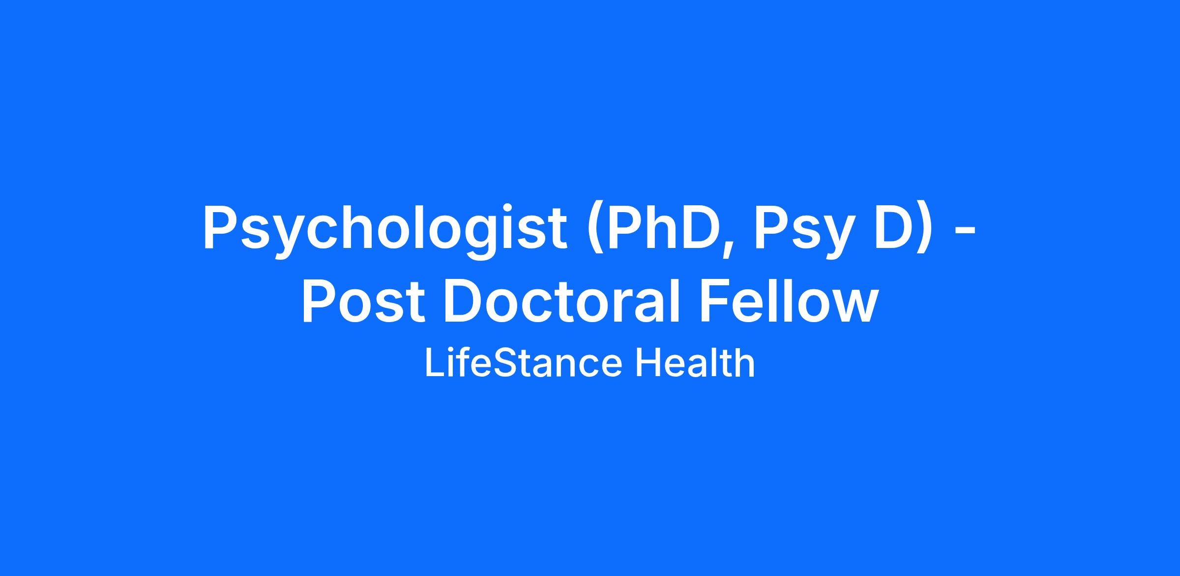 Psychologist (PhD, Psy D) - Post Doctoral Fellow
