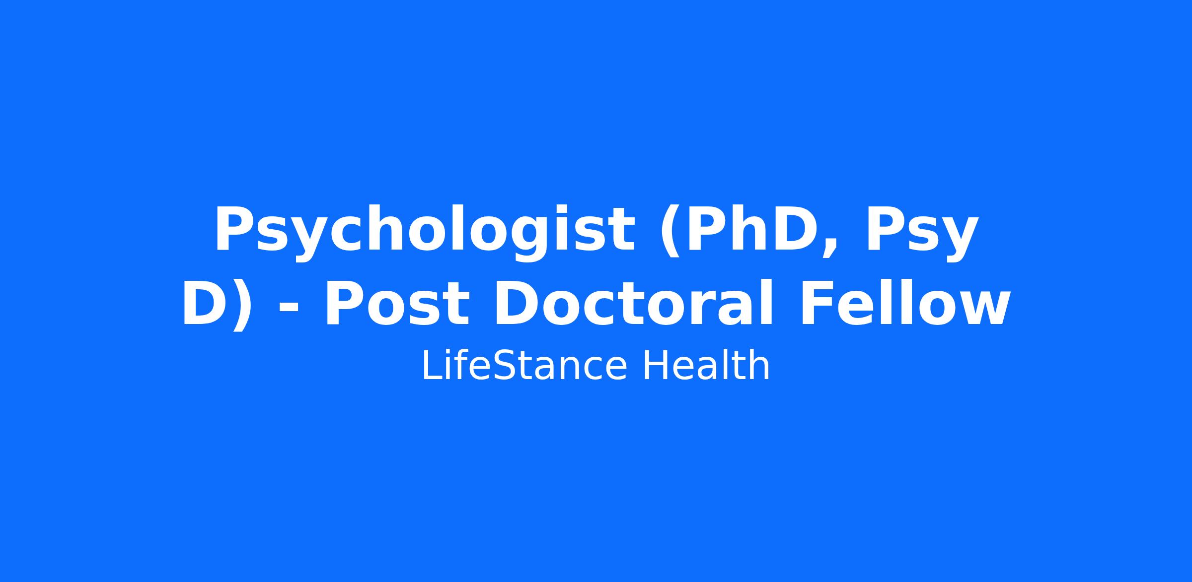 Psychologist (PhD, Psy D) - Post Doctoral Fellow