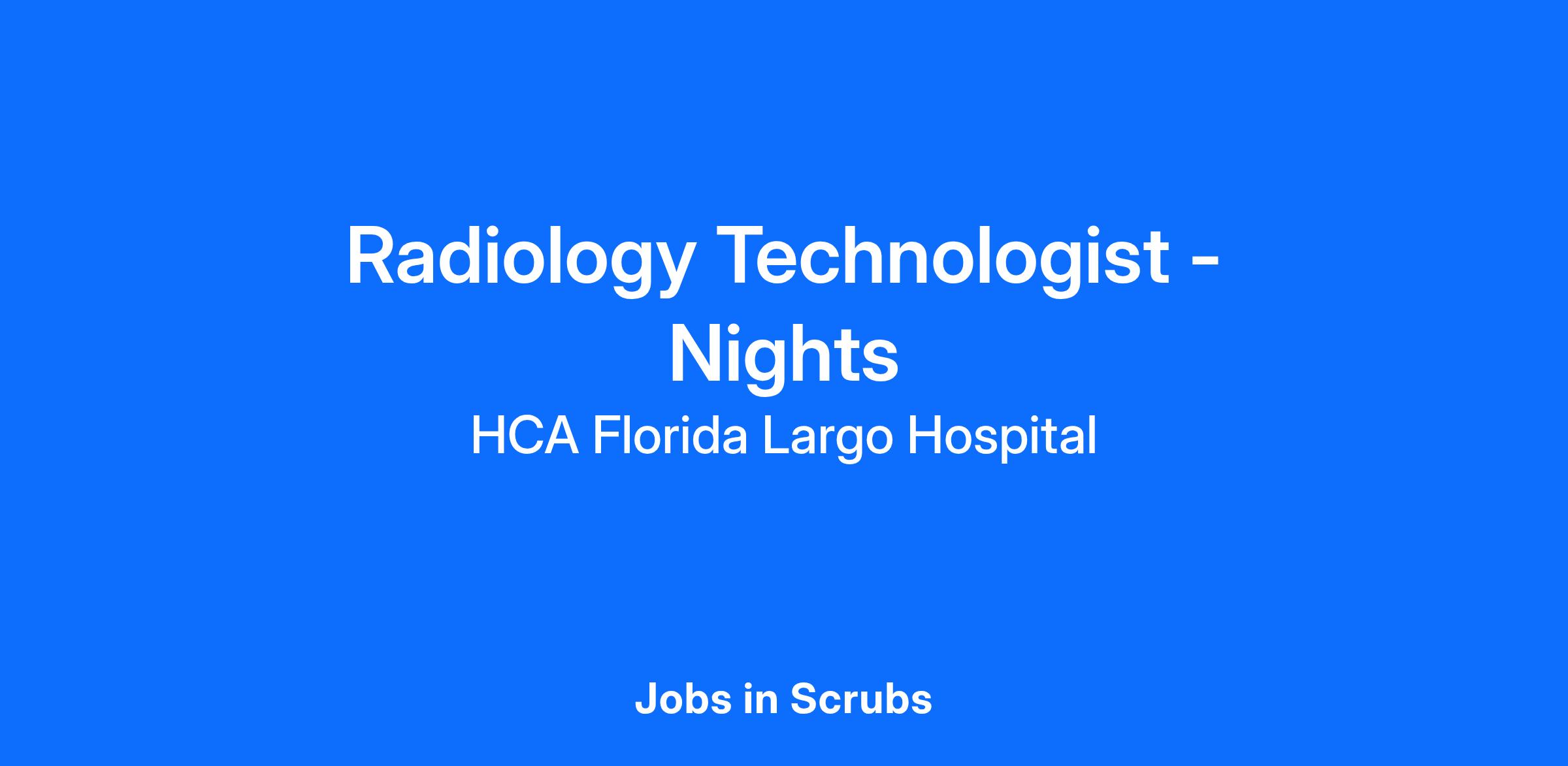 Do you want to join an organization that invests in you as a(an) Radiology Technologist? At HCA Florida Largo Hospital, you come first. HCA Healthcare has committed up to $300 million in programs to support our incredible team members over the course of three years.