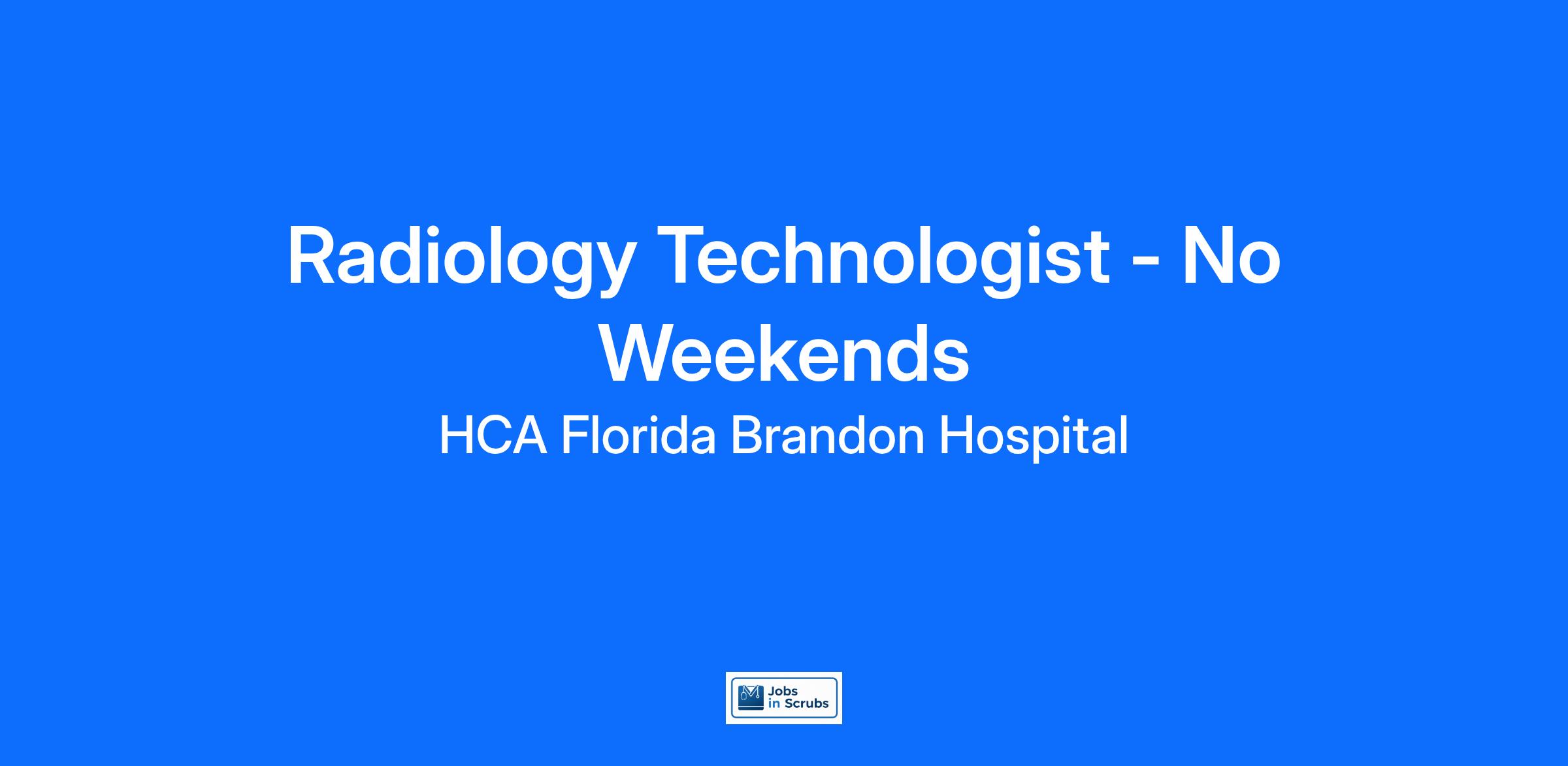 External Radiology Technologist applicants with at least 1 year of experience may be eligible for up to $15,000 in sign-on incentives for this full-time opportunity. Relocation assistance may also be available. Ask a recruiter about your eligibility today!Do you have the career opportunities as a(an) Radiology Technologist - No Weekends you want with your current employer? We have an exciting opportunity for you to join HCA Florida Brandon Hospital which is part of the nation's leading provider of healthcare services, HCA Healthcare.