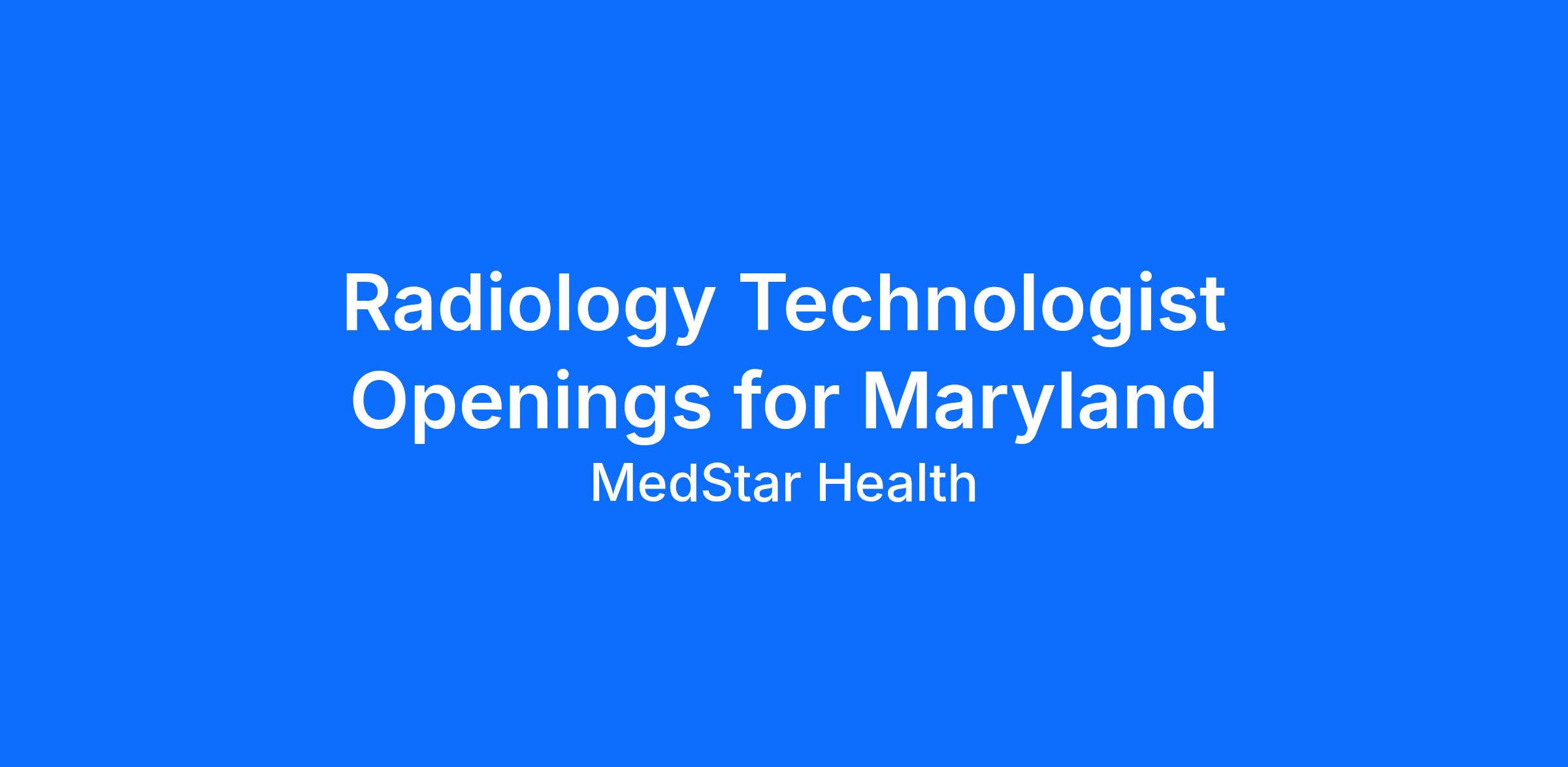 Positions available at MedStar Franklin Square Medical Center,MedStar Union Memorial Hospital, Medstar Good Samaritan Hosptial, Urgent Care all though out DMV, and Southern Maryland Hosptial.