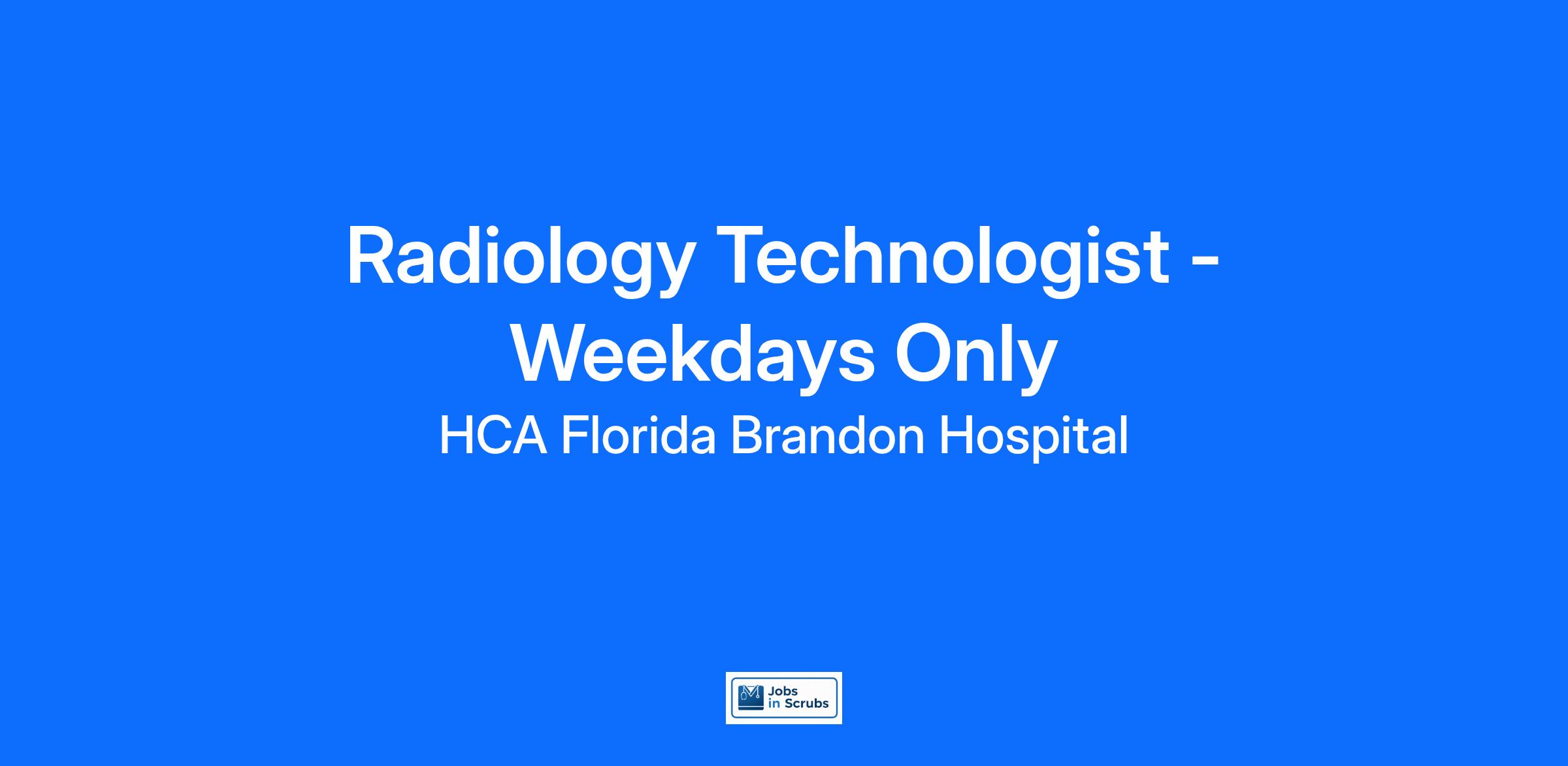 External Radiology Technologist applicants with at least 1 year of experience may be eligible for up to $15,000 in sign-on incentives for this full-time opportunity. Relocation assistance may also be available. Ask a recruiter about your eligibility today!Last year our HCA Healthcare colleagues invested over 156,000 hours volunteering in our communities. As a(an) Radiology Technologist - Weekdays Only with HCA Florida Brandon Hospital you can be a part of an organization that is devoted to giving back!
