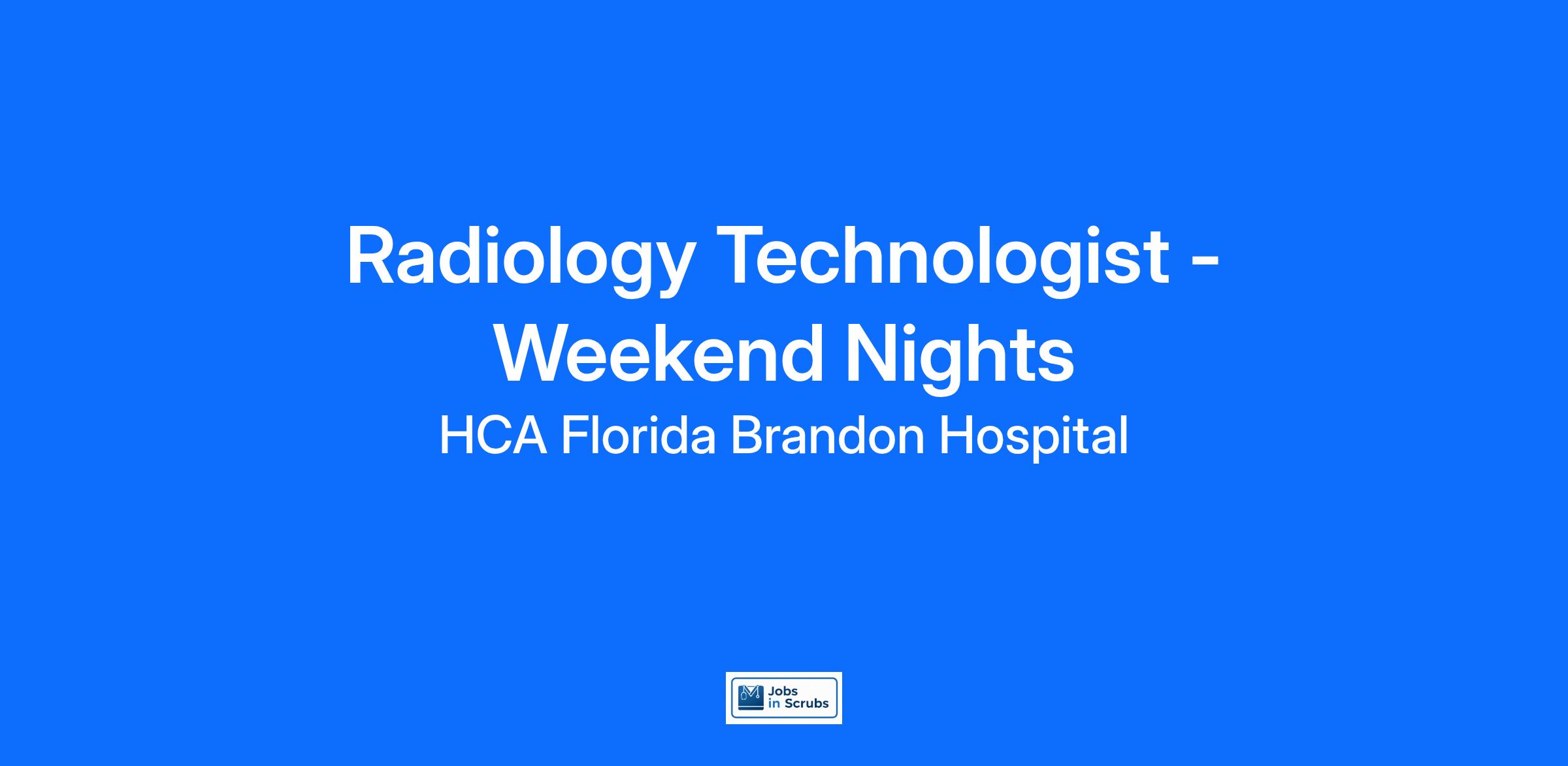 External Radiology Technologist applicants with at least 1 year of experience may be eligible for up to $15,000 in sign-on incentives for this full-time opportunity. Relocation assistance may also be available. Ask a recruiter about your eligibility today!Last year our HCA Healthcare colleagues invested over 156,000 hours volunteering in our communities. As a(an) Radiology Technologist - Weekend Nights with HCA Florida Brandon Hospital you can be a part of an organization that is devoted to giving back!