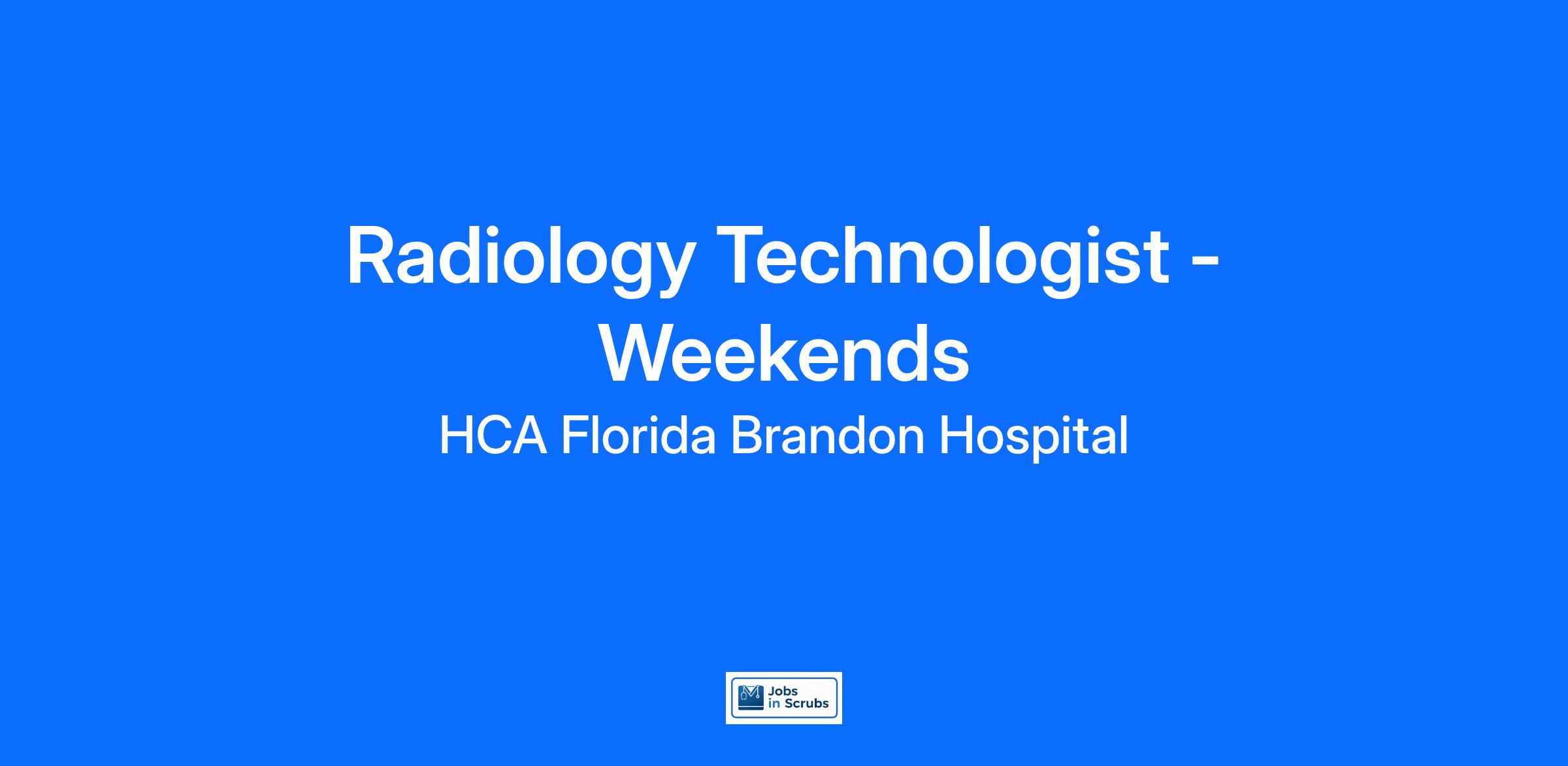 External Radiology Technologist applicants with at least 1 year of experience may be eligible for up to $15,000 in sign-on incentives for this full-time opportunity. Relocation assistance may also be available. Ask a recruiter about your eligibility today!Do you have the career opportunities as a(an) Radiology Technologist - Weekends you want with your current employer? We have an exciting opportunity for you to join HCA Florida Brandon Hospital which is part of the nation's leading provider of healthcare services, HCA Healthcare.