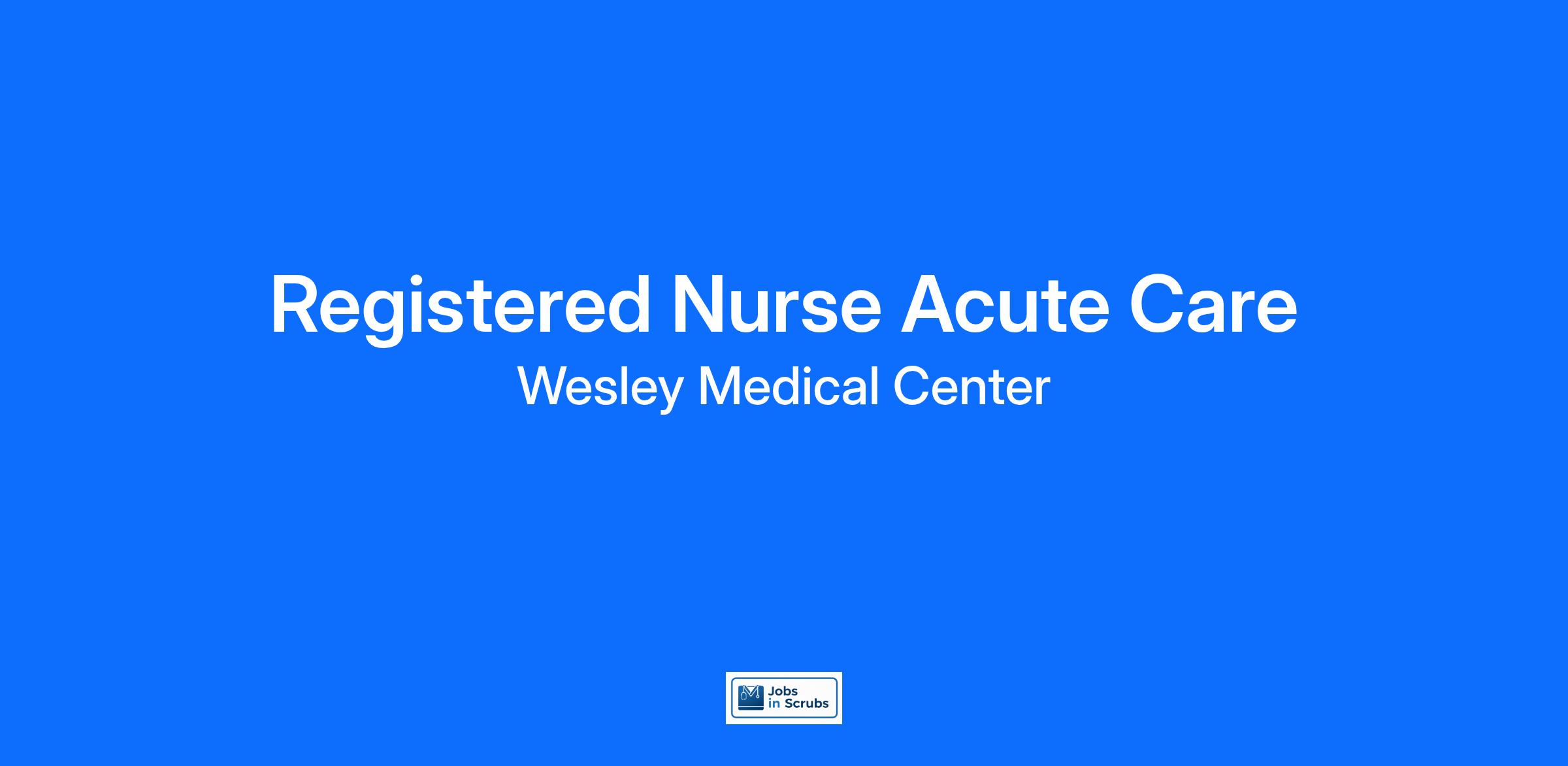 Do you have the career opportunities as a(an) Registered Nurse Acute Care you want in your current role? We invest in what matters most to nurses like you – at home, at work, and at every stage in your career. We have an exciting opportunity for you to join Wesley Medical Center which is a part of the nation’s leading provider of healthcare services, HCA Healthcare.