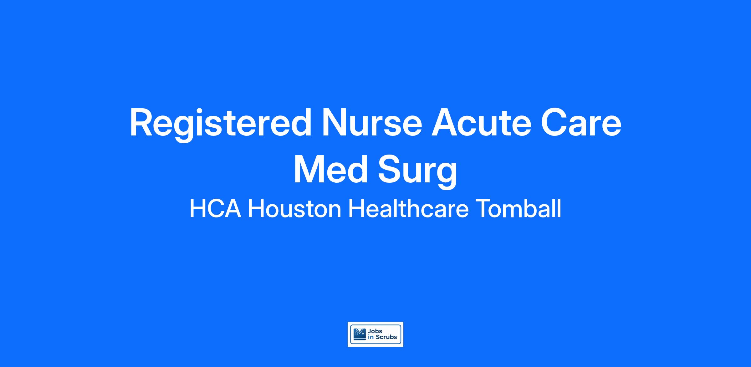 Do you have the PRN career opportunities as a(an) Registered Nurse RN Acute Care - PRN you want with your current employer? We have an exciting opportunity for you to join HCA Houston Healthcare Tomball which is part of the nation's leading provider of healthcare services, HCA Healthcare.