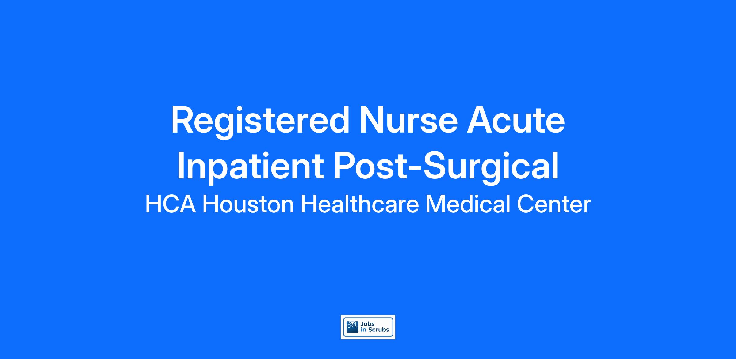 Would you like to unlock your potential with a leading healthcare provider dedicated to the growth and development of our colleagues? Join the HCA Houston Healthcare Medical Center family! We will give you the tools and resources you need to succeed in our organization. We are looking for an enthusiastic Registered Nurse Acute Inpatient Post-Surgical to help us reach our goals. Unlock your potential!