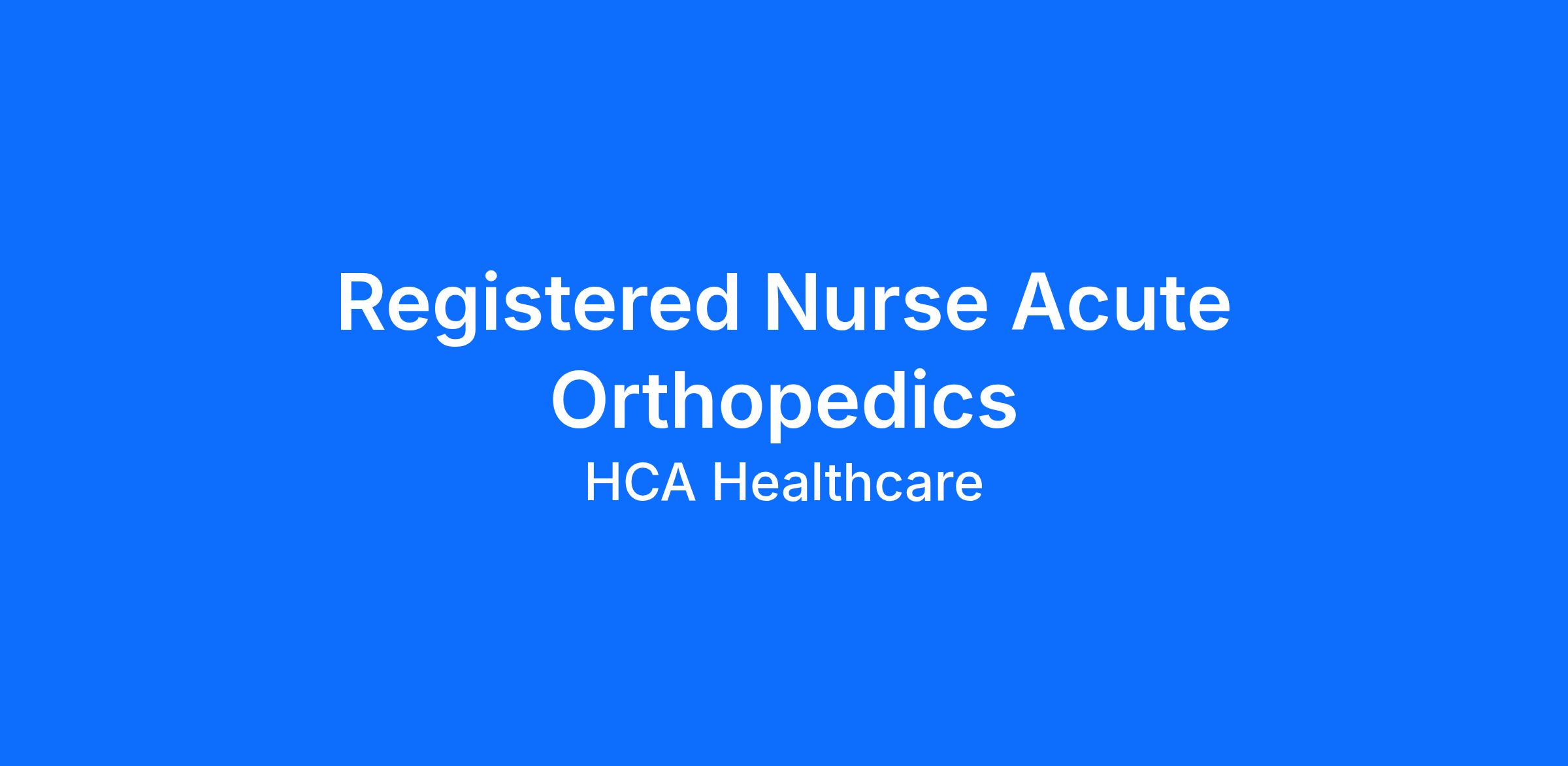 Join a family that cares about every stage in your career! We are interviewing candidates for our RN Acute Orthopedics opening.Apply today and a member of our Talent Acquisition team will reach out.