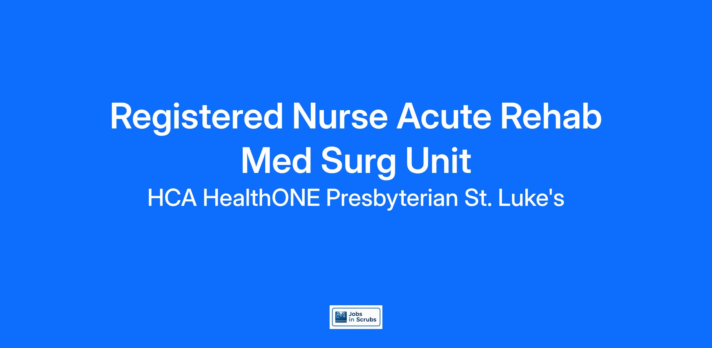 Do you have the career opportunities as a(an) Registered Nurse - Rehab you want with your current employer? We have an exciting opportunity for you to join HCA HealthONE Presbyterian St. Luke's which is part of the nation's leading provider of healthcare services, HCA Healthcare.