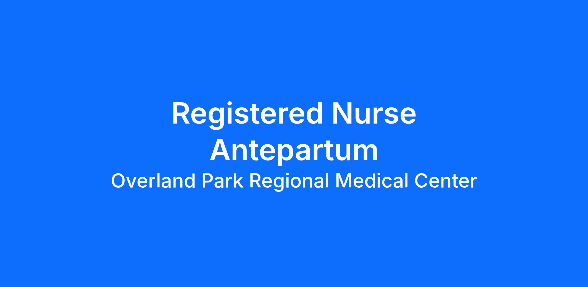 Do you have the career opportunities as a(an) Registered Nurse Antepartum you want in your current role? We invest in what matters most to nurses like you – at home, at work, and at every stage in your career. We have an exciting opportunity for you to join Overland Park Regional Medical Center which is a part of the nation’s leading provider of healthcare services, HCA Healthcare.