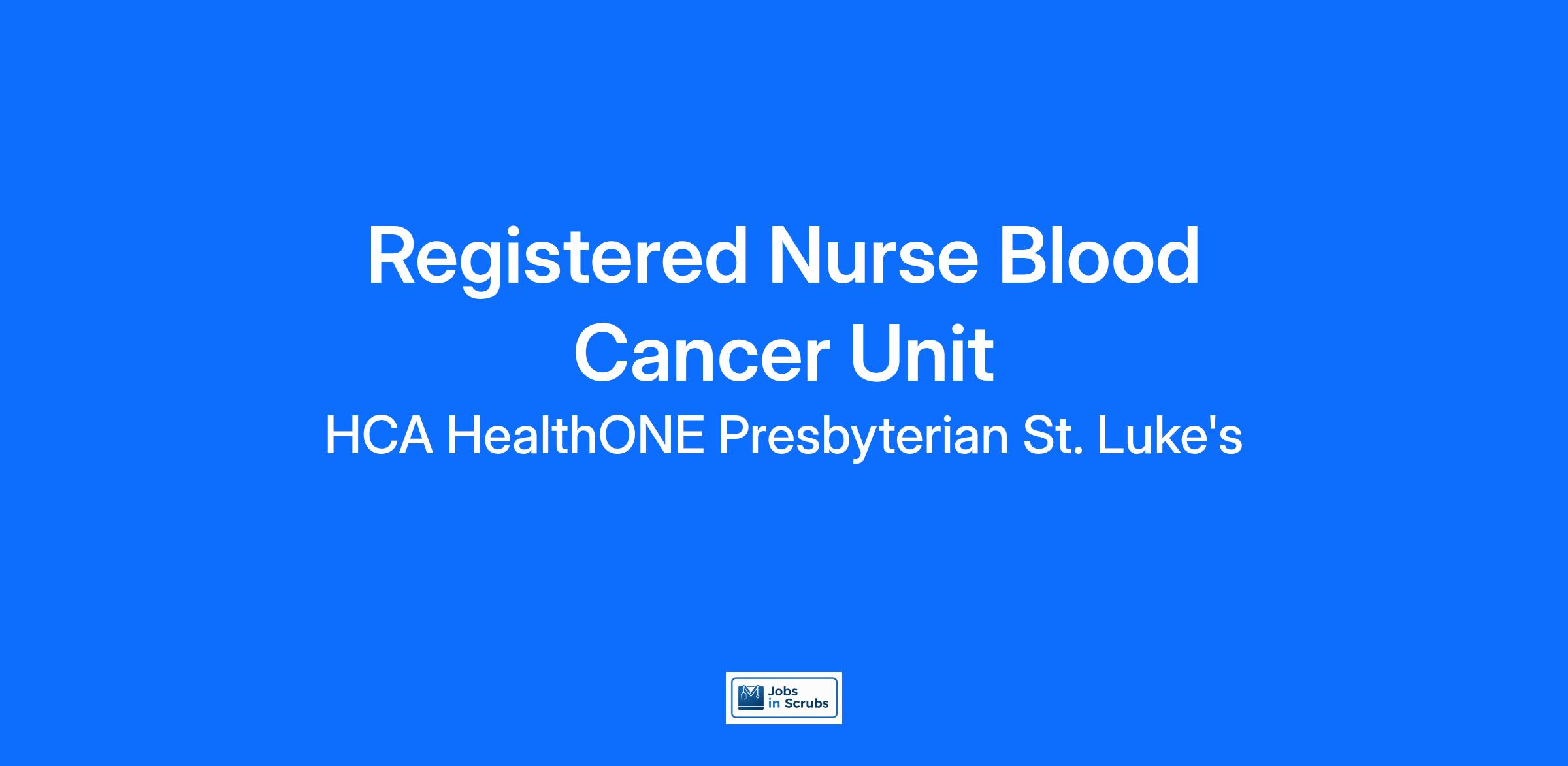 Do you currently have an opportunity to make a real impact with your work? With over 2,000 sites of care and serving over 31.2 million patient interactions every year, nurses at HCA HealthONE Presbyterian St. Luke's have the opportunity to make a real impact. As a(an) Registered Nurse Blood Cancer Unit you can be a part of change.