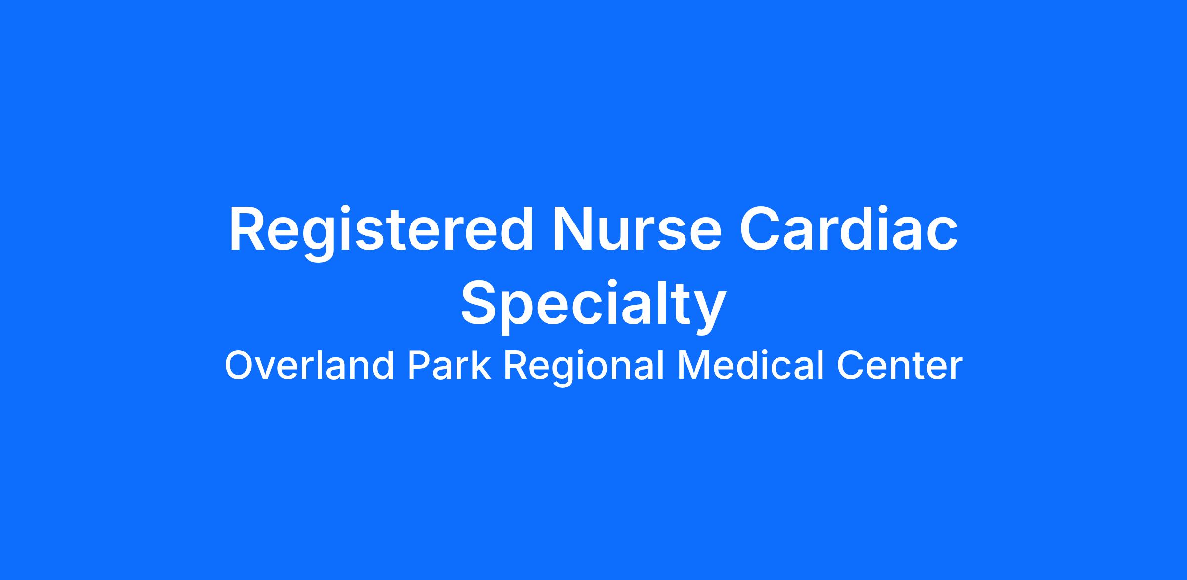 Are you looking for a place to deliver excellent care patients deserve? At Overland Park Regional Medical Center we support our colleagues in their positions. Join our Team as a(an) Registered Nurse Cardiac Specialty and access programs to assist with every stage of your career.