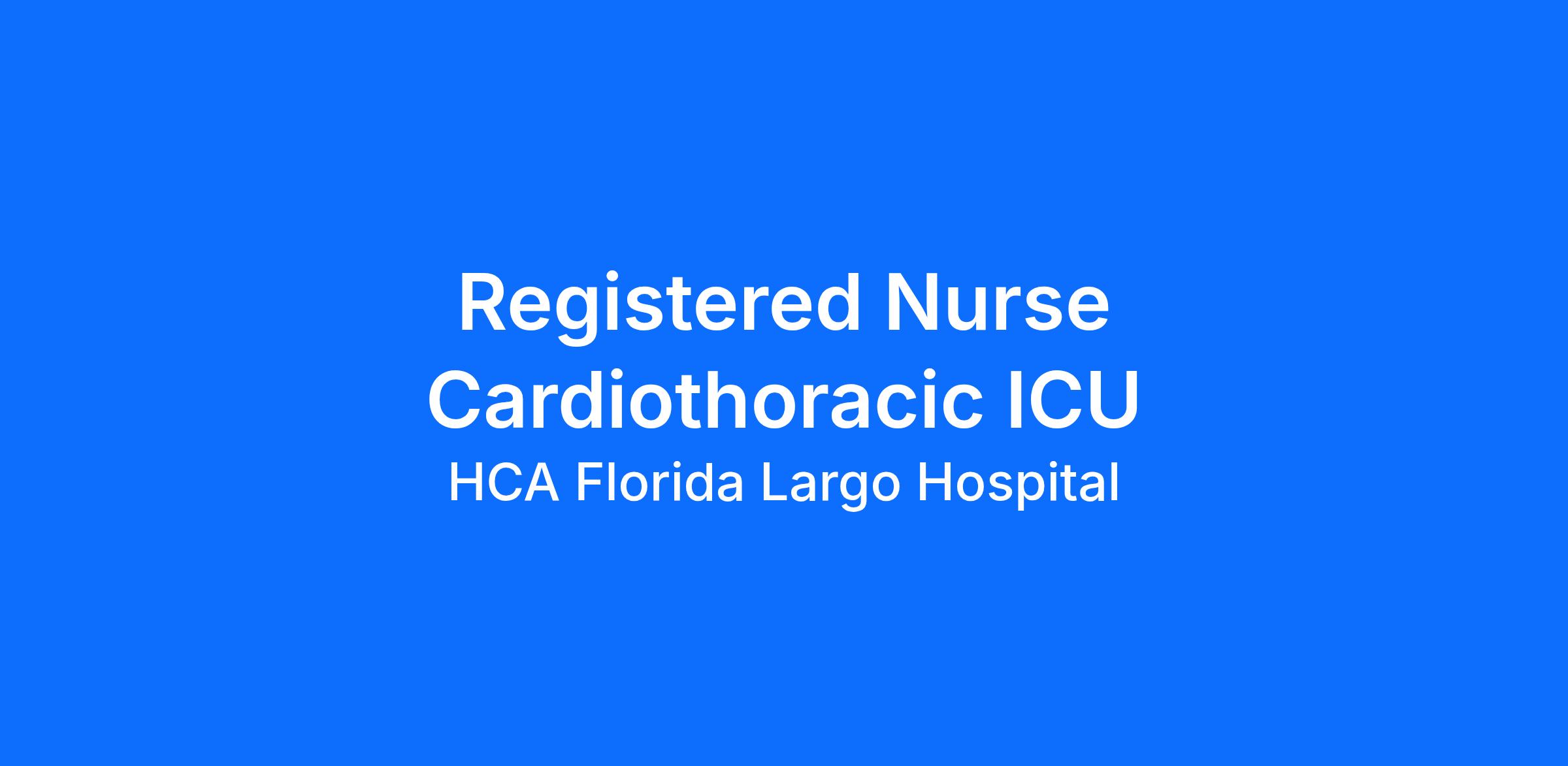 Do you have the career opportunities as a Registered Nurse Cardiothoracic CTICU you want in your current role? We invest in what matters most to nurses like you – at home, at work, and at every stage in your career. We have an exciting opportunity for you to join HCA Florida Largo Hospital which is a part of the nation’s leading provider of healthcare services, HCA Healthcare.
