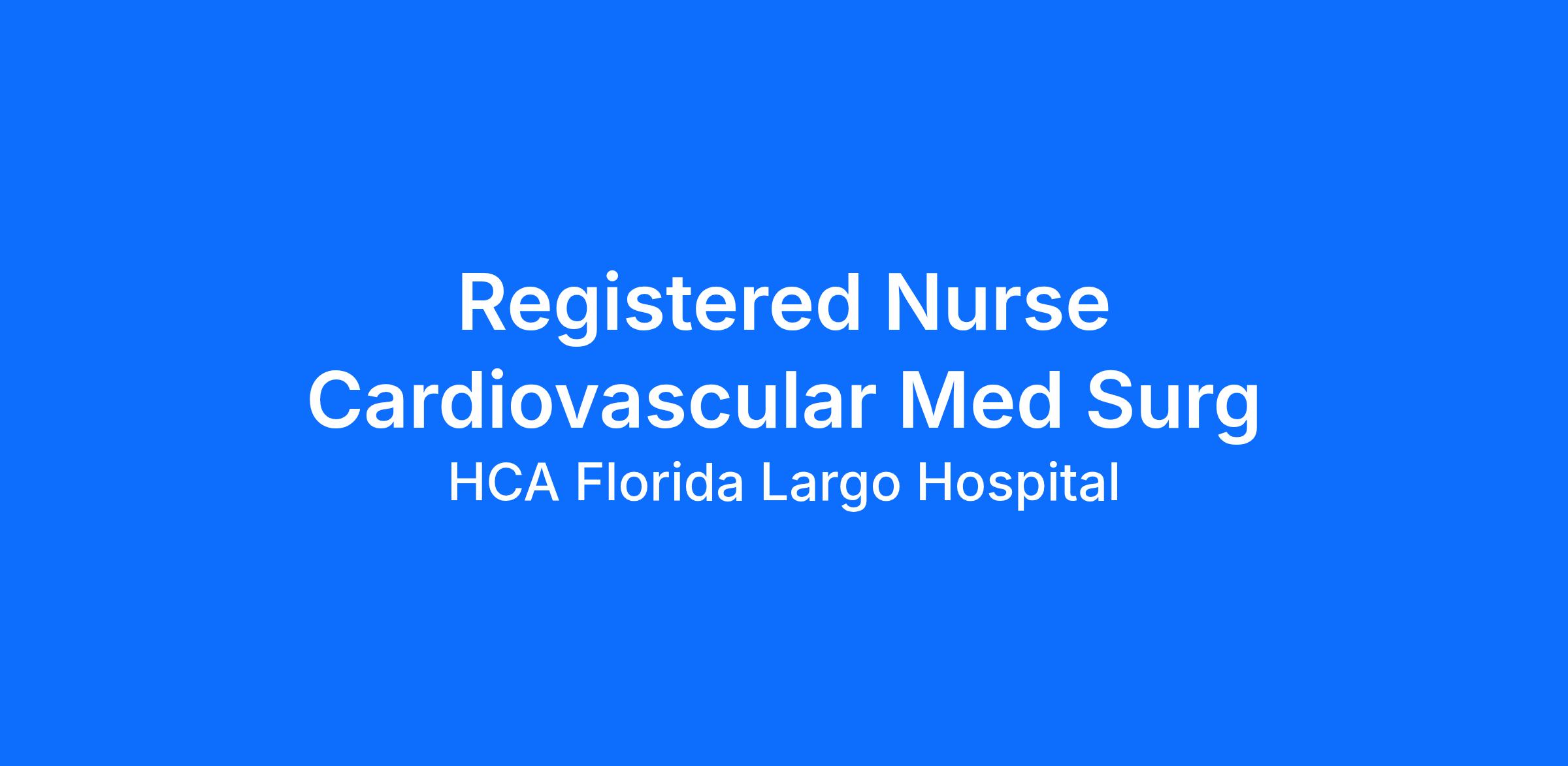Do you want to be appreciated daily? Our nurses are celebrated for being on the front line, empathetic for patients. At HCA Florida Largo Hospital our nurses set us apart from any other healthcare provider. We are seeking a(an) RN Registered Nurse Cardiovascular Med Surg to join our healthcare family.