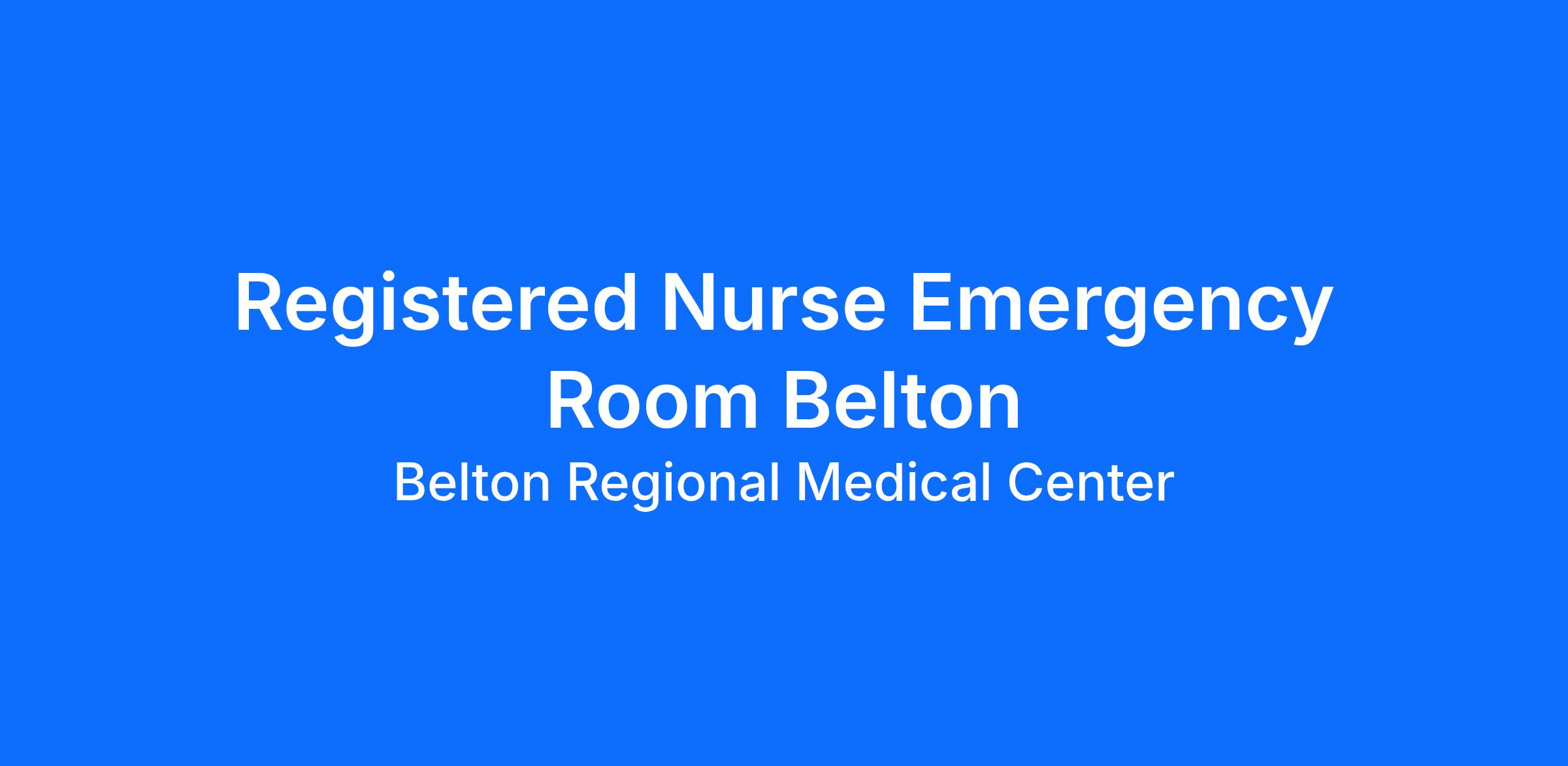 Do you have the career opportunities as a RN, Registered Nurse Emergency Room you want with your current employer? We have an exciting opportunity for you to join Belton Regional Medical Center which is part of the nation's leading provider of healthcare services, HCA Healthcare.