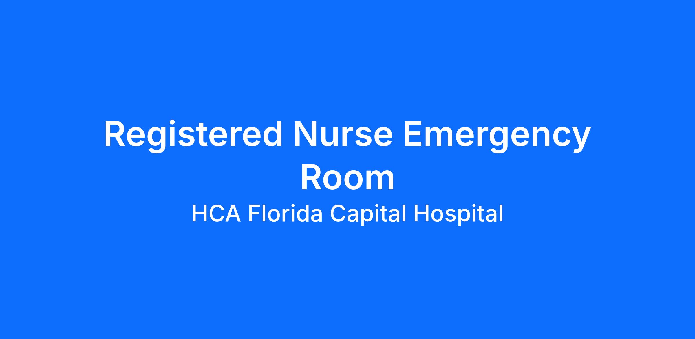 Are you looking for a place to deliver excellent care patients deserve? At HCA Florida Capital Hospital we support our colleagues in their positions. Join our Team as a(an) Registered Nurse Emergency Room and access programs to assist with every stage of your career.