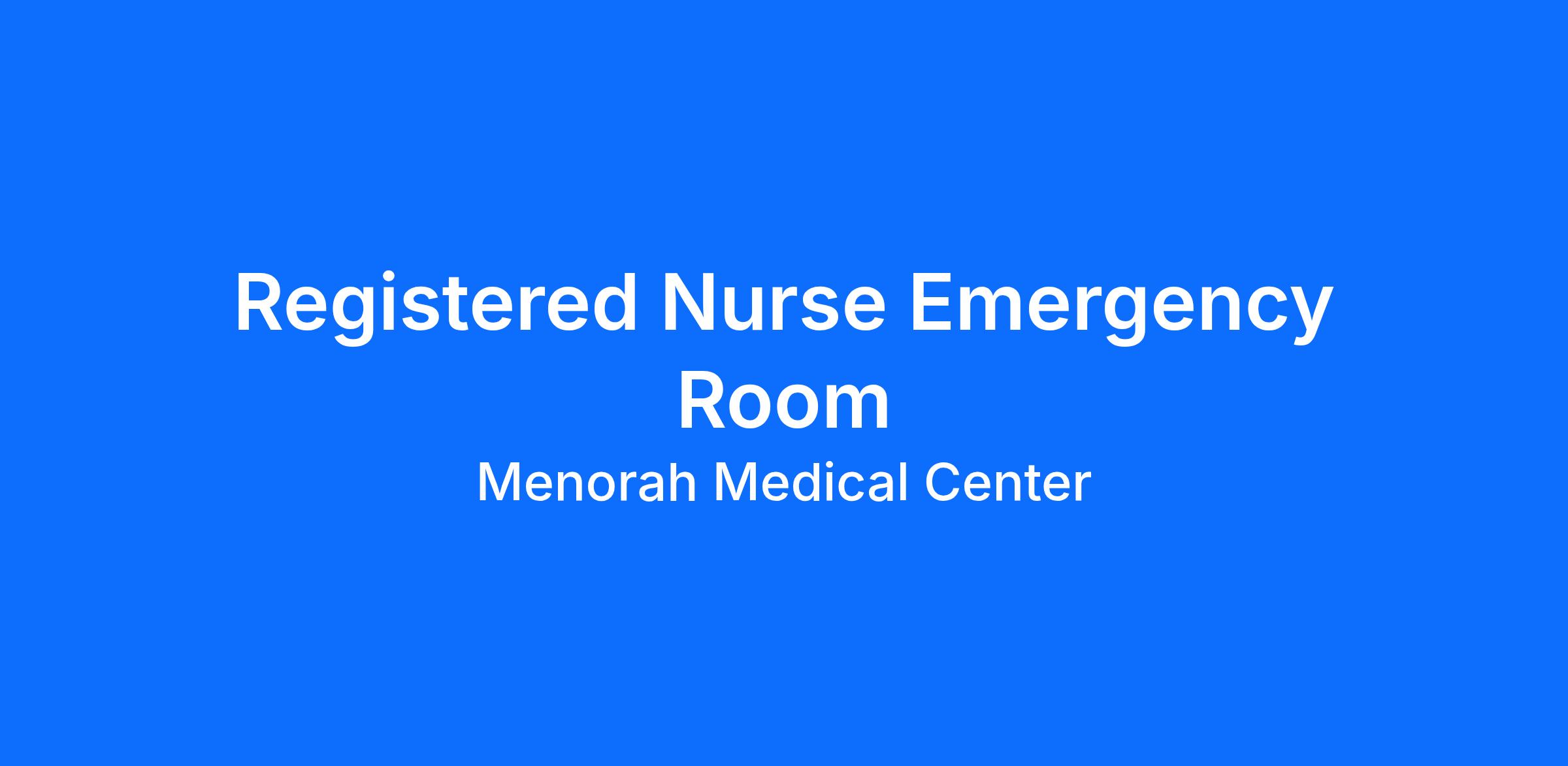 Experience the HCA Healthcare difference where colleagues are trusted, valued members of our healthcare team. Grow your career with an organization committed to delivering respectful, compassionate care, and where the unique and intrinsic worth of each individual is recognized. Submit your application for the opportunity below:Registered Nurse Emergency RoomMenorah Medical Center