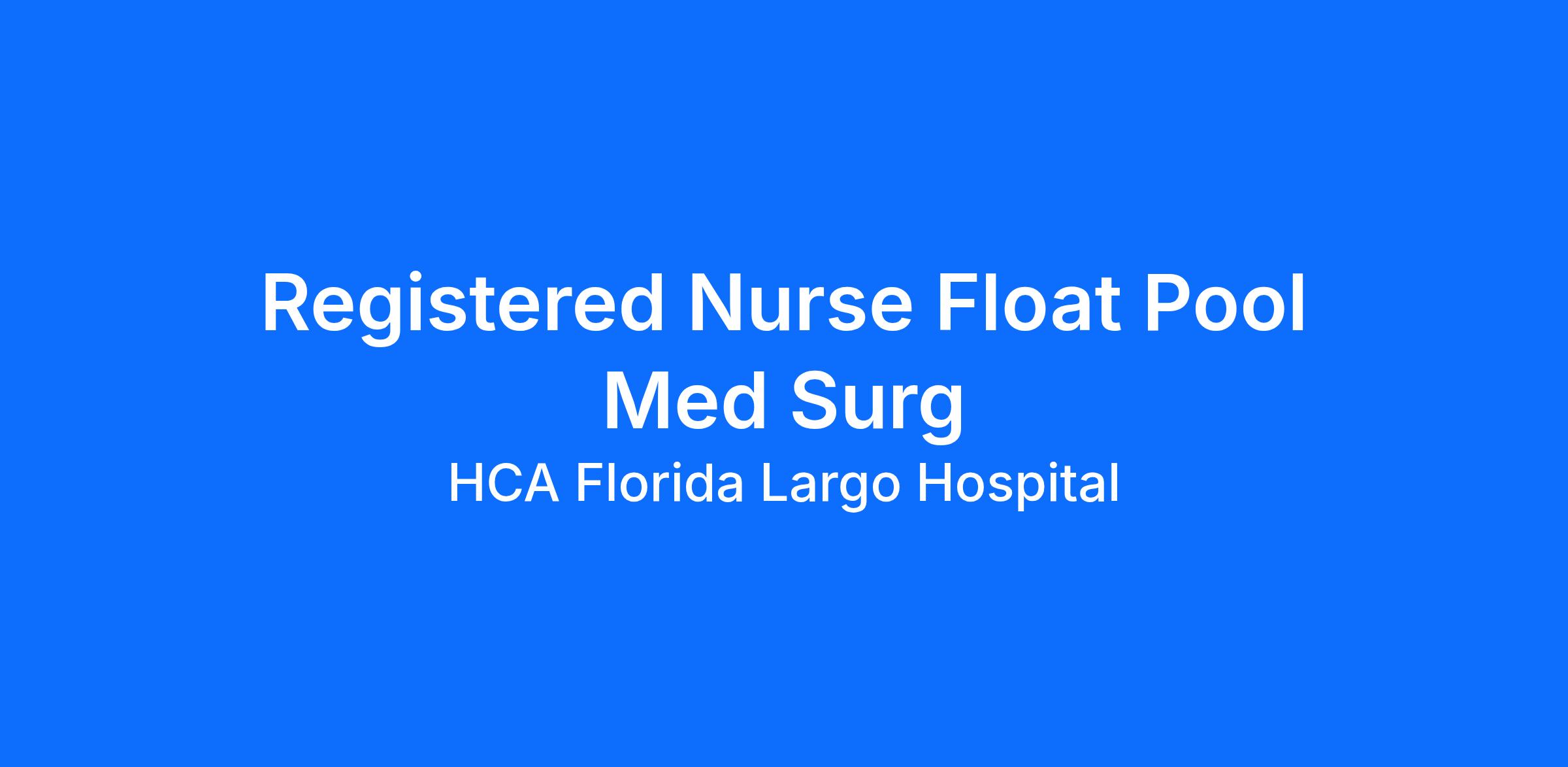 Do you have the career opportunities as a(an) RN Registered Nurse Float Pool Med Surg you want in your current role? We invest in what matters most to nurses like you – at home, at work, and at every stage in your career. We have an exciting opportunity for you to join HCA Florida Largo Hospital which is a part of the nation’s leading provider of healthcare services, HCA Healthcare.