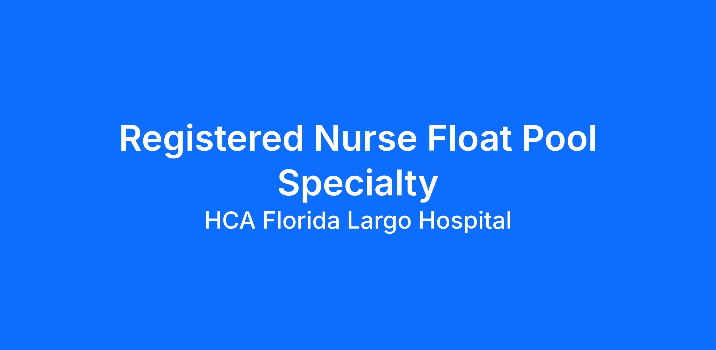 Do you want to be appreciated daily? Our nurses are celebrated for being on the front line, empathetic for patients. At HCA Florida Largo Hospital our nurses set us apart from any other healthcare provider. We are seeking a(an) Registered Nurse RN Float Pool-Specialty to join our healthcare family.