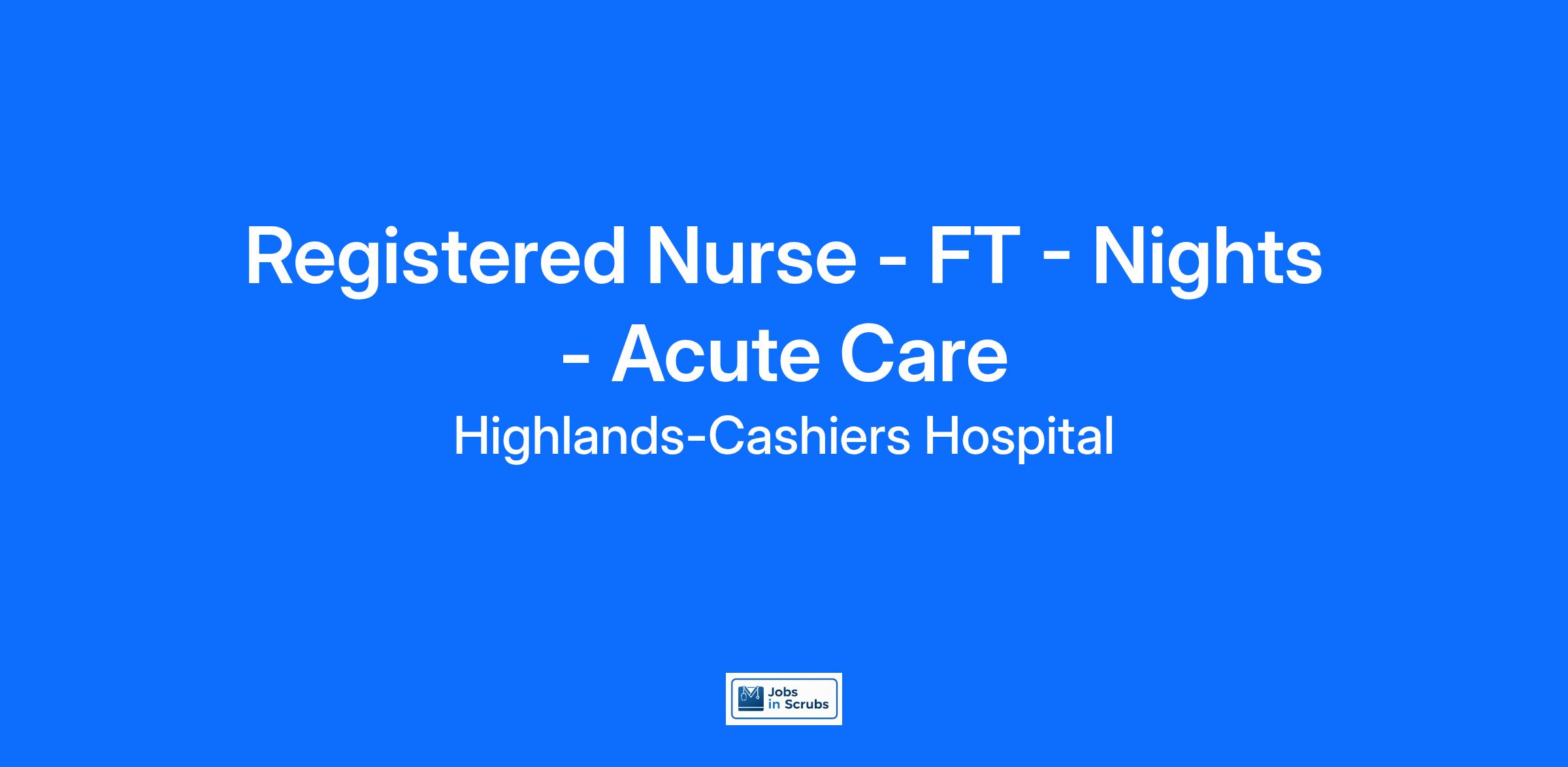 Do you want to join an organization that invests in you as a Registered Nurse Acute Care? At Highlands-Cashiers Hospital, you come first. HCA Healthcare has committed up to $300 million in programs to support our incredible team members over the course of three years.