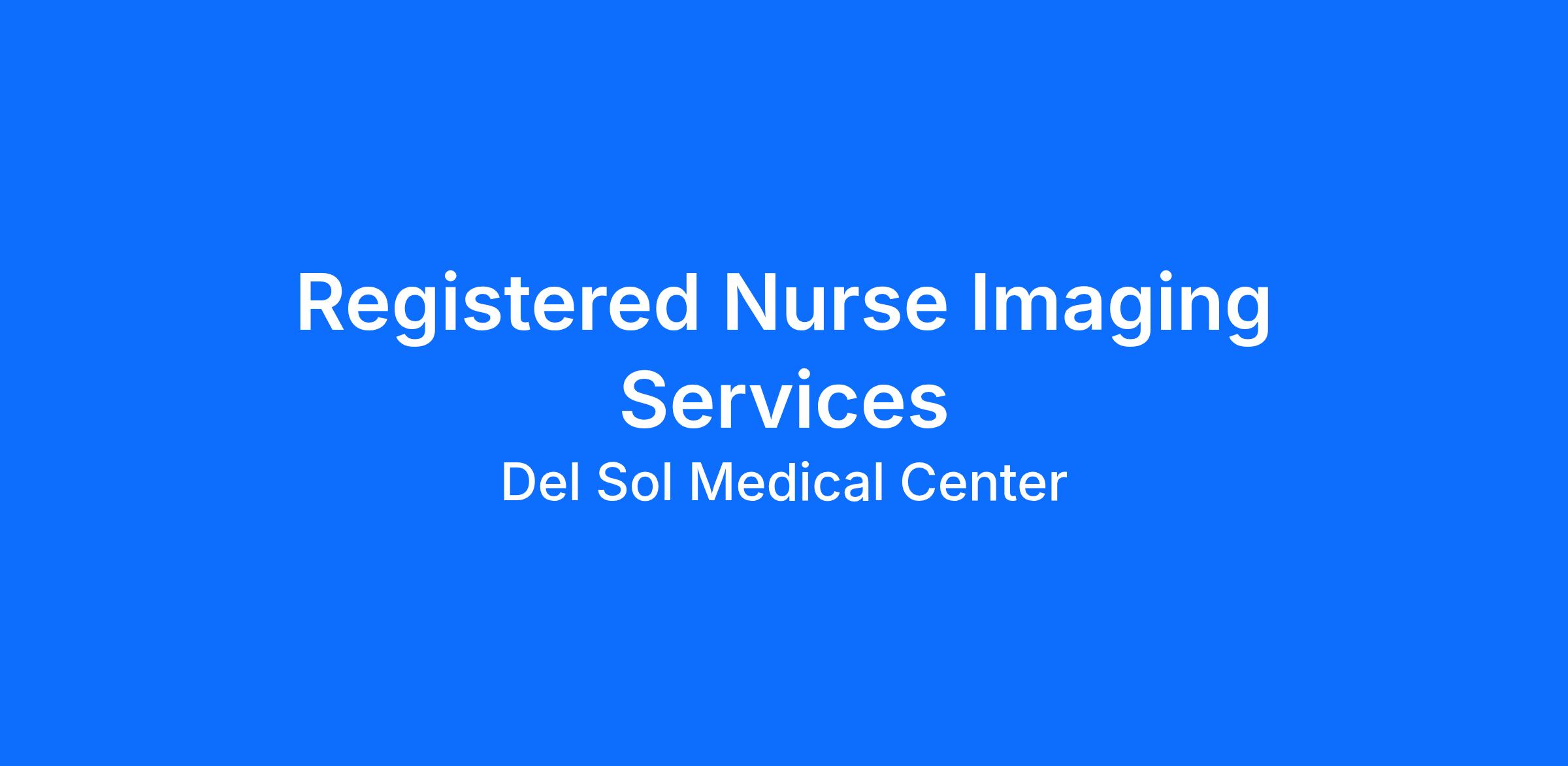 Are you looking for a place to deliver excellent care patients deserve? At Del Sol Medical Center we support our colleagues in their positions. Join our Team as a(an) Registered Nurse Imaging Services and access programs to assist with every stage of your career.
