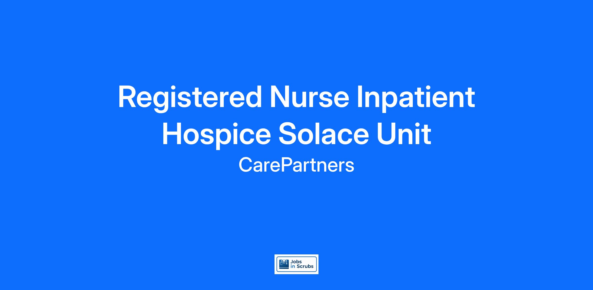 Experience the HCA Healthcare difference where colleagues are trusted, valued members of our healthcare team. Grow your career with an organization committed to delivering respectful, compassionate care, and where the unique and intrinsic worth of each individual is recognized. Submit your application for the opportunity below:Registered Nurse Inpatient Hospice Solace Unit with CarePartners!