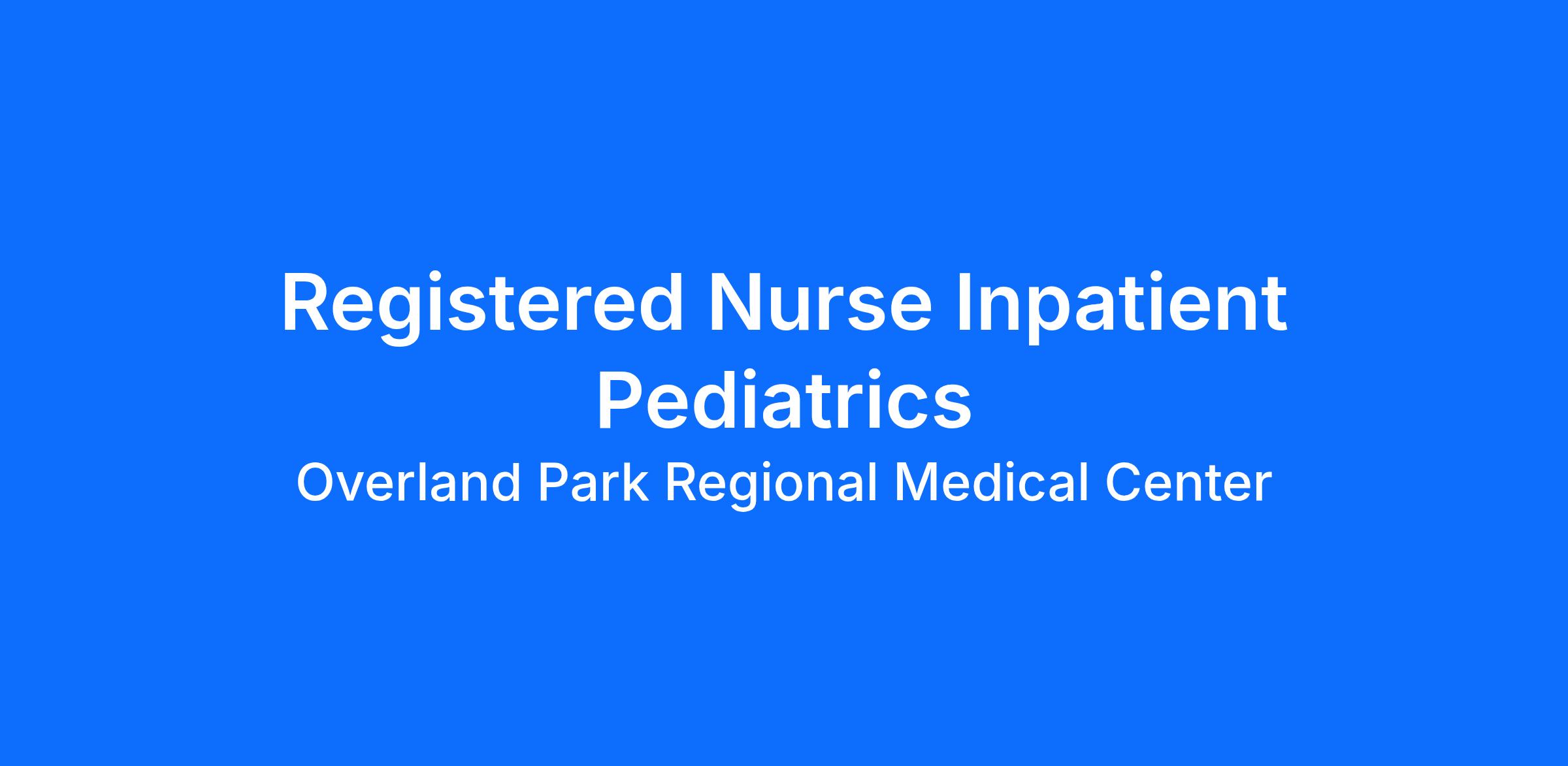 Overland Park Regional Medical Center is committed to investing in the latest technology enabling nurses to work more efficiently. Are you passionate about delivering patient-centered care? Submit your application for Registered Nurse Inpatient Pediatrics position and spend more time at the bedside with the patient.