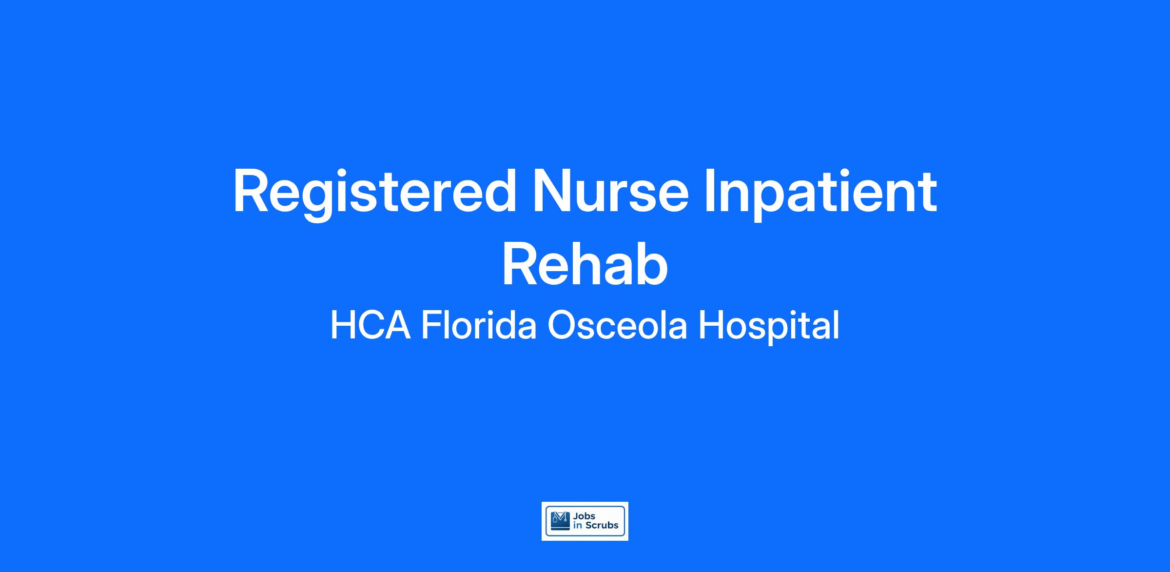 Are you passionate about the patient experience? At HCA Healthcare, we are committed to caring for patients with purpose and integrity. We care like family! Jump-start your career as a(an) Registered Nurse Inpatient Rehab today with HCA Florida Osceola Hospital.