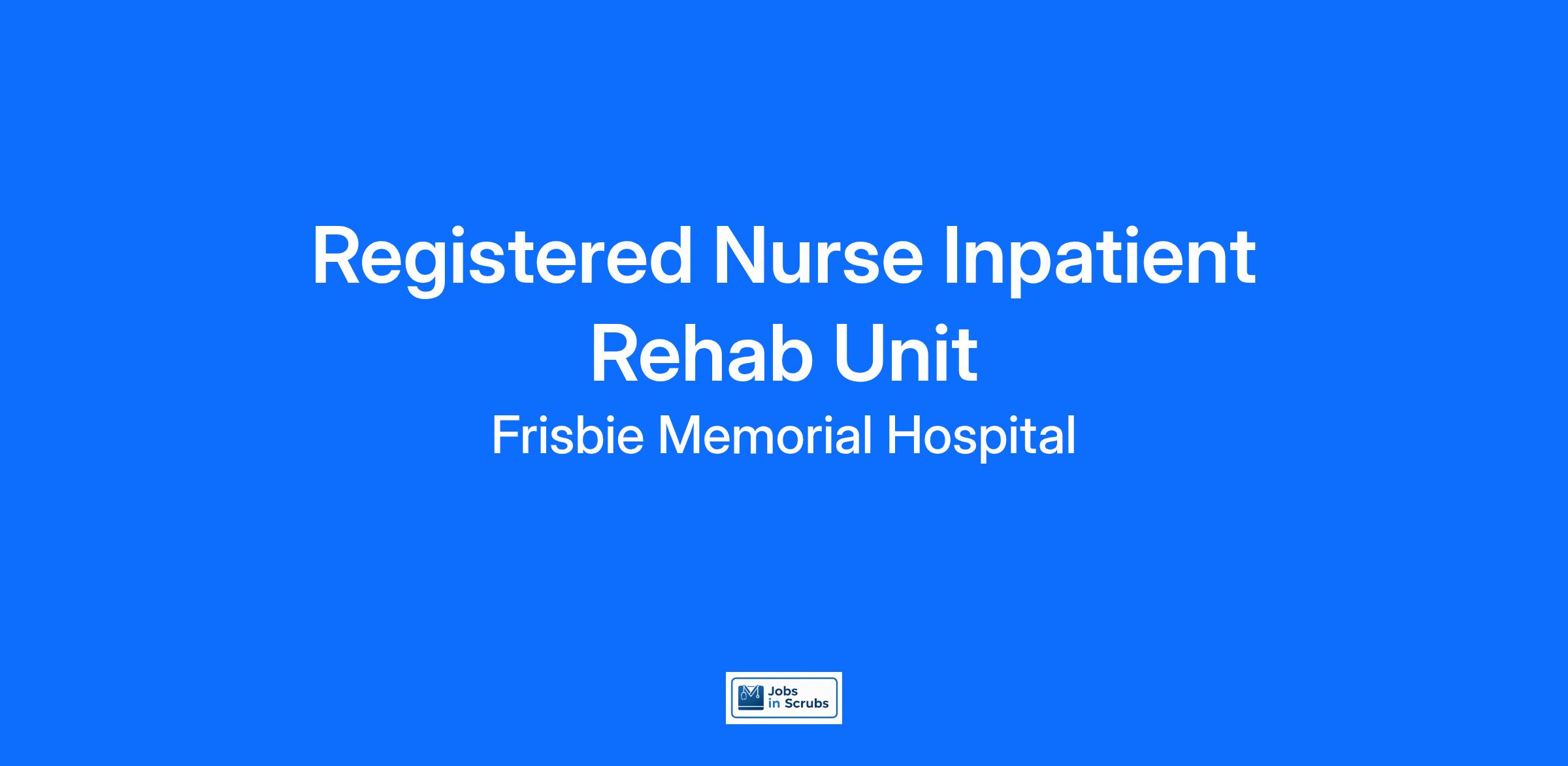 Are you looking for a place to deliver excellent care patients deserve? At Frisbie Memorial Hospital we support our colleagues in their positions. Join our Team as a Registered Nurse Inpatient Rehab Unit and access programs to assist with every stage of your career.