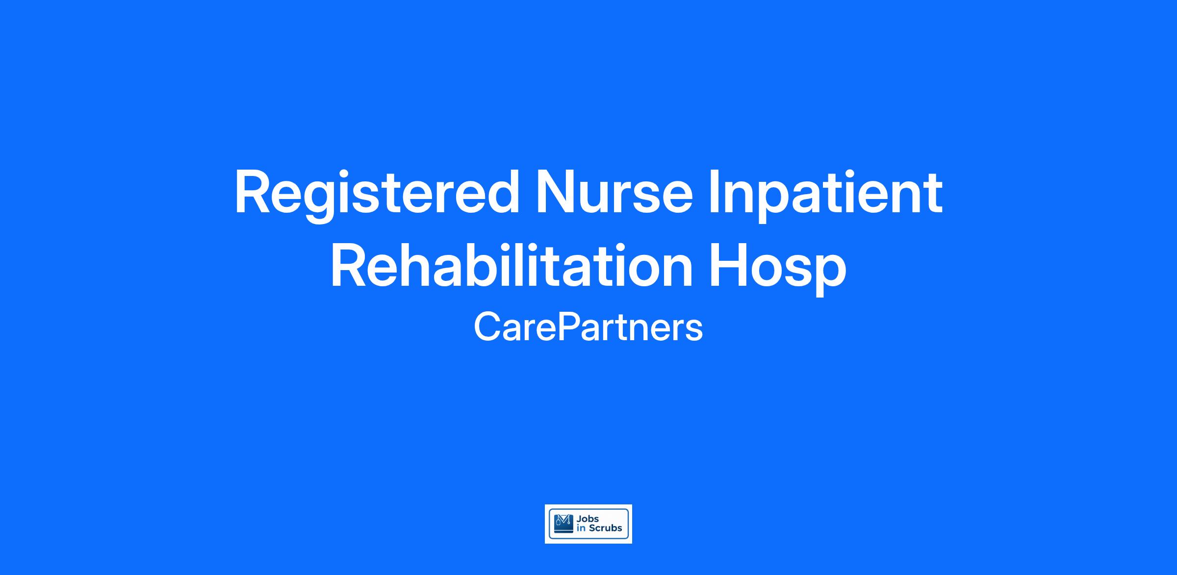 Experience the HCA Healthcare difference where colleagues are trusted, valued members of our healthcare team. Grow your career with an organization committed to delivering respectful, compassionate care, and where the unique and intrinsic worth of each individual is recognized. Submit your application for the opportunity below:Registered Nurse Inpatient Rehabilitation Hospital with CarePartners Health Services.