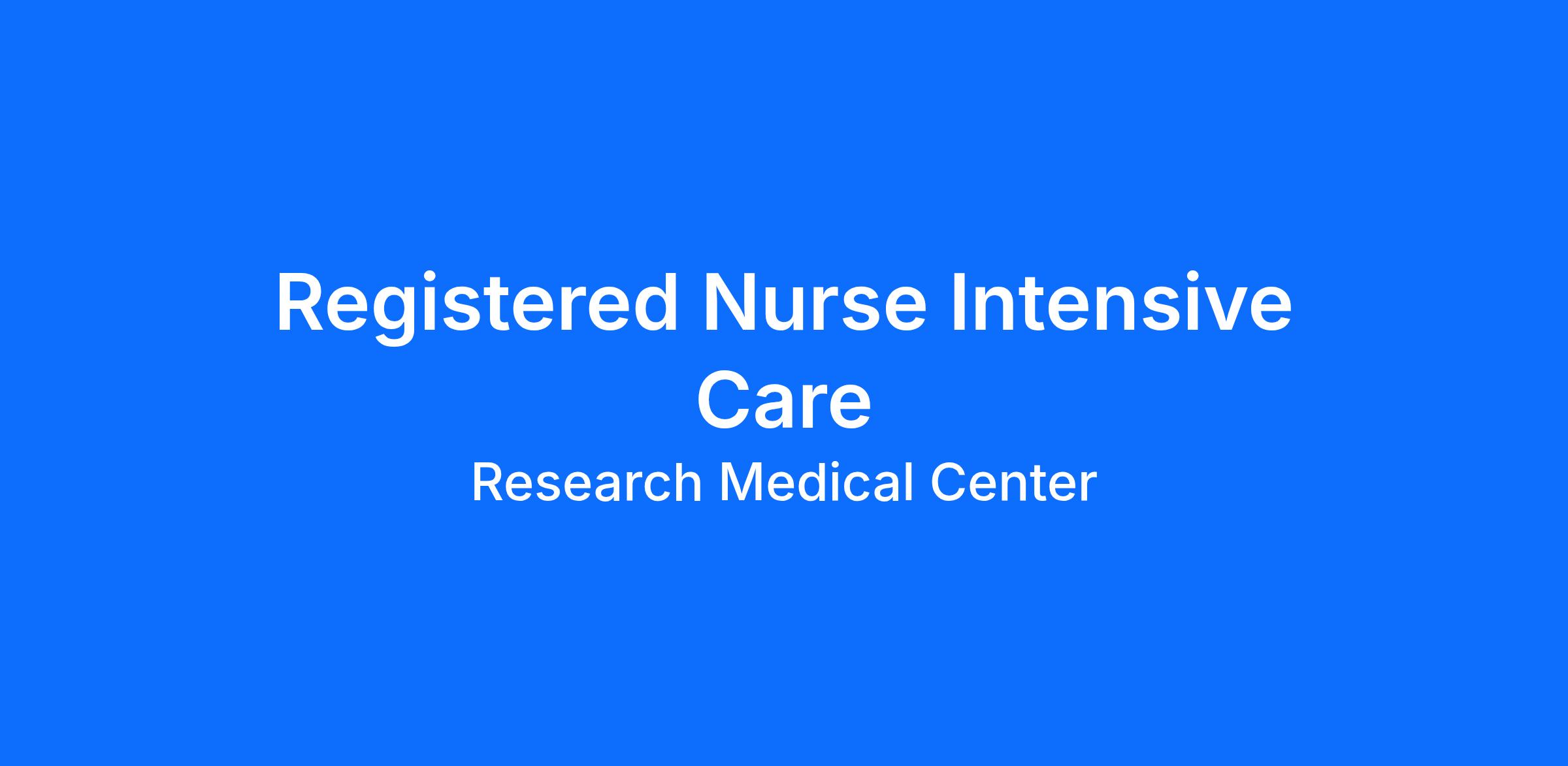 Do you currently have an opportunity to make a real impact with your work? With over 2,000 sites of care and serving over 31.2 million patient interactions every year, nurses at Research Medical Center have the opportunity to make a real impact. As a(an) Registered Nurse Intensive Care you can be a part of change.