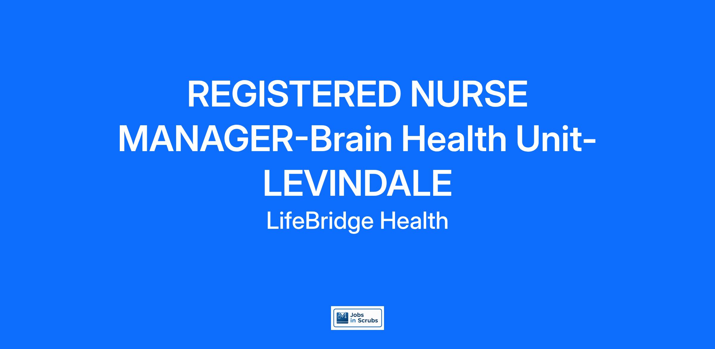 REGISTERED NURSE MANAGER-Brain Health Unit- LEVINDALE