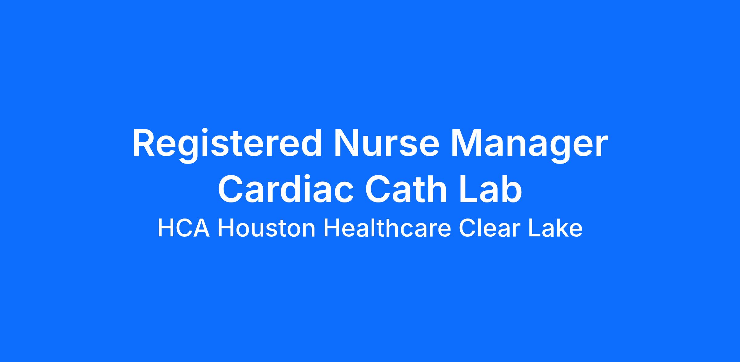 At HCA Houston Healthcare Clear Lake, our nurses play a vital part. We know that every nurse’s path and purpose is unique. Do you want to create your own personal career path in nursing? HCA Healthcare is your career destination! Our scale makes it possible for nurses to create the career path that fits their life – for life – and empowers their passion for patient care. Apply today for our Registered Nurse Manager Cardiac Cath Lab opportunity.