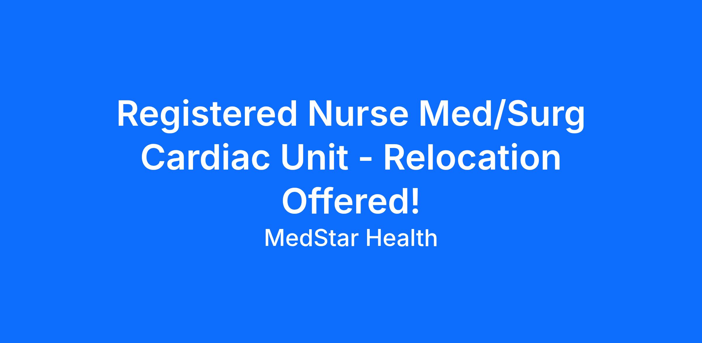 Registered Nurse Med/Surg Cardiac Unit - Relocation Offered!