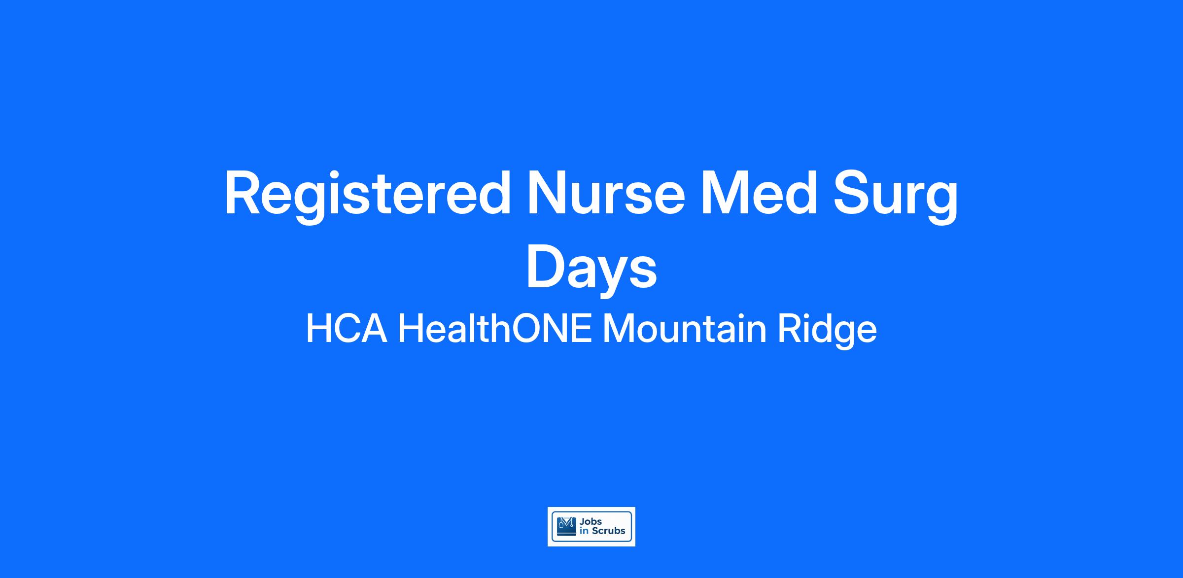 Do you have the career opportunities as a(an) Registered Nurse Med Surg you want in your current role? We invest in what matters most to nurses like you – at home, at work, and at every stage in your career. We have an exciting opportunity for you to join HCA HealthONE Mountain Ridge which is a part of the nation’s leading provider of healthcare services, HCA Healthcare.