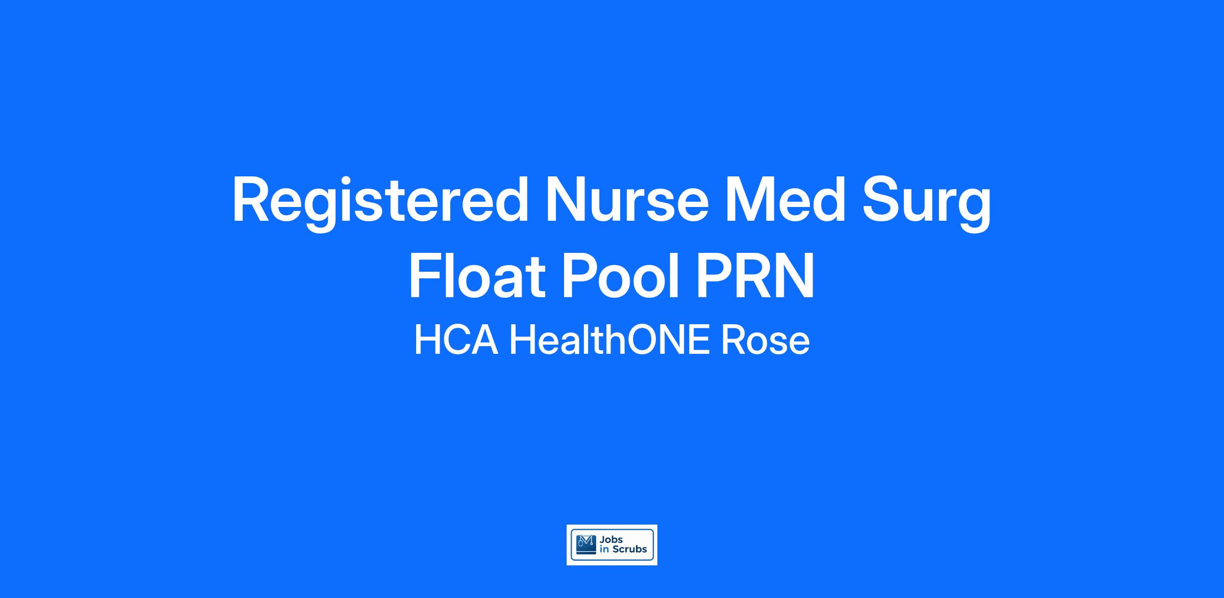 Do you want to be appreciated daily? Our nurses are celebrated for being on the front line, empathetic for patients. At HCA HealthONE Rose our nurses set us apart from any other healthcare provider. We are seeking a(an) Registered Nurse Float Pool PRN to join our healthcare family.