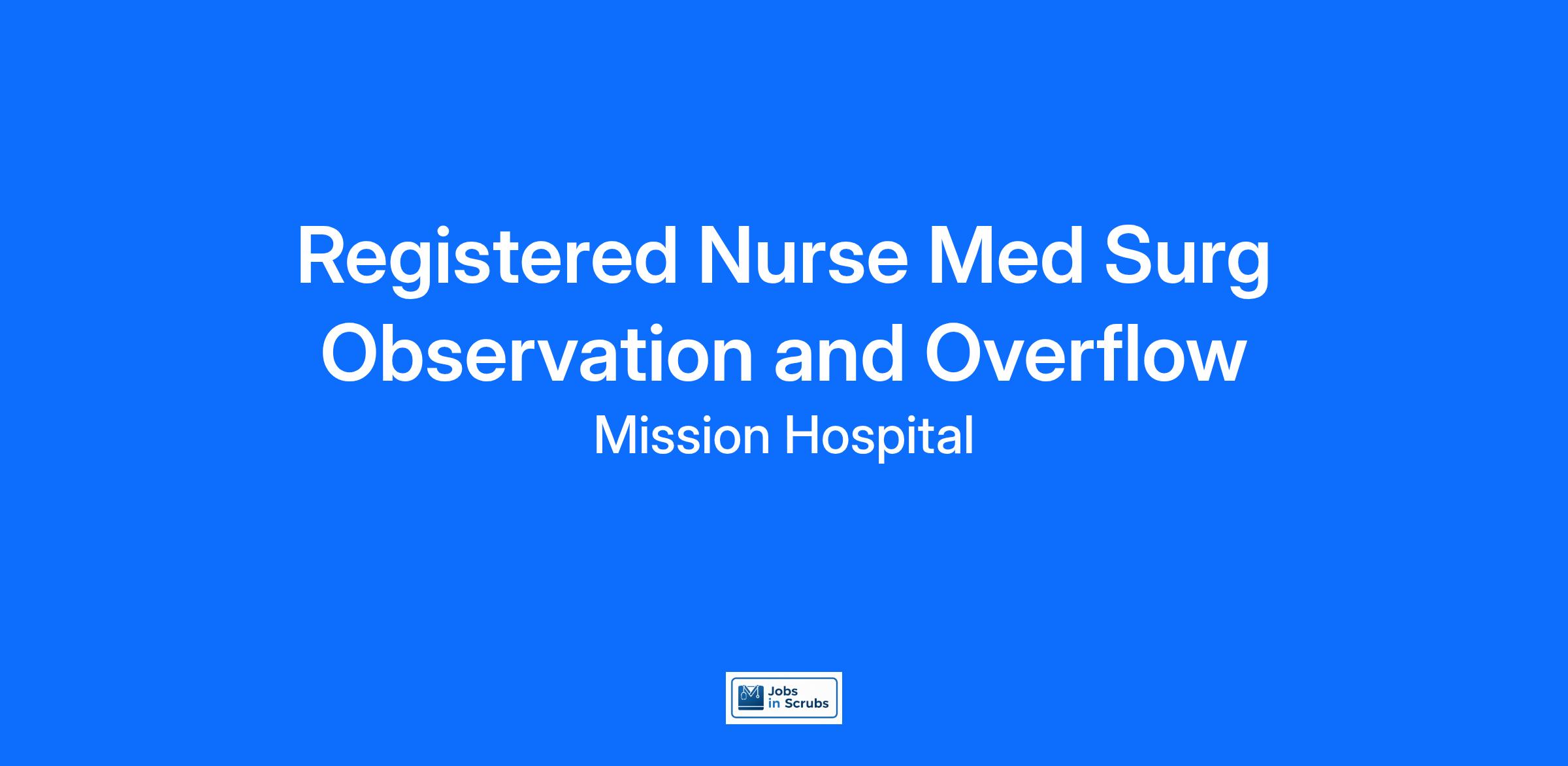 Do you have the career opportunities as a Registered Nurse Med Surg Observation and Overflow you want in your current role? We invest in what matters most to nurses like you – at home, at work, and at every stage in your career. We have an exciting opportunity for you to join Mission Hospital which is a part of the nation’s leading provider of healthcare services, HCA Healthcare.