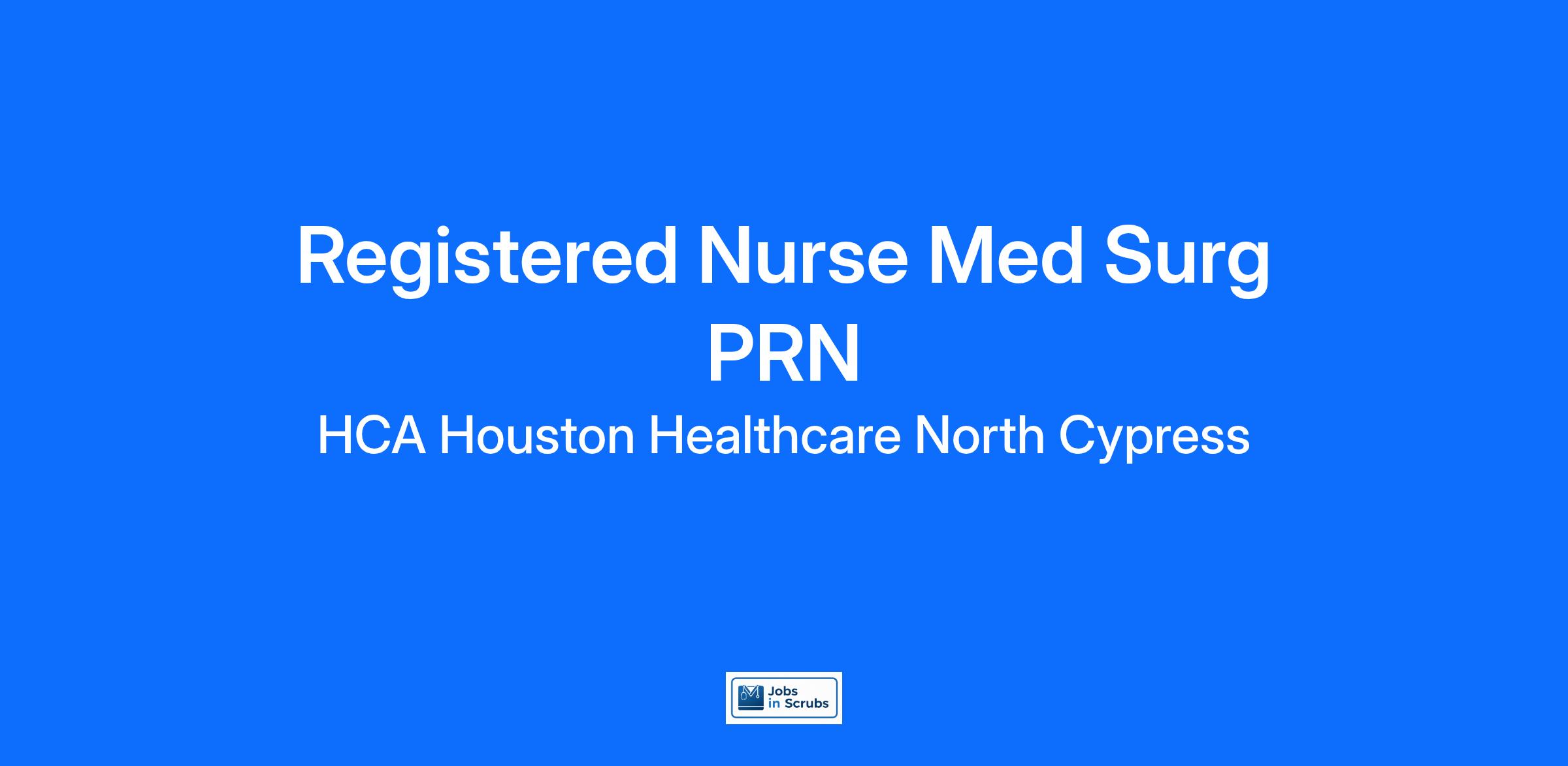 Do you have the PRN career opportunities as a Registered Nurse Med Surg you want with your current employer? We have an exciting opportunity for you to join HCA Houston Healthcare North Cypress which is part of the nation's leading provider of healthcare services, HCA Healthcare.
