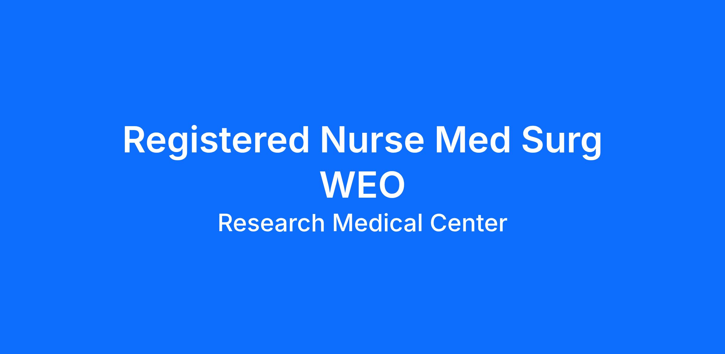 Do you have the career opportunities as a Registered Nurse WEO you want with your current employer? We have an exciting opportunity for you to join Research Medical Center which is part of the nation's leading provider of healthcare services, HCA Healthcare.