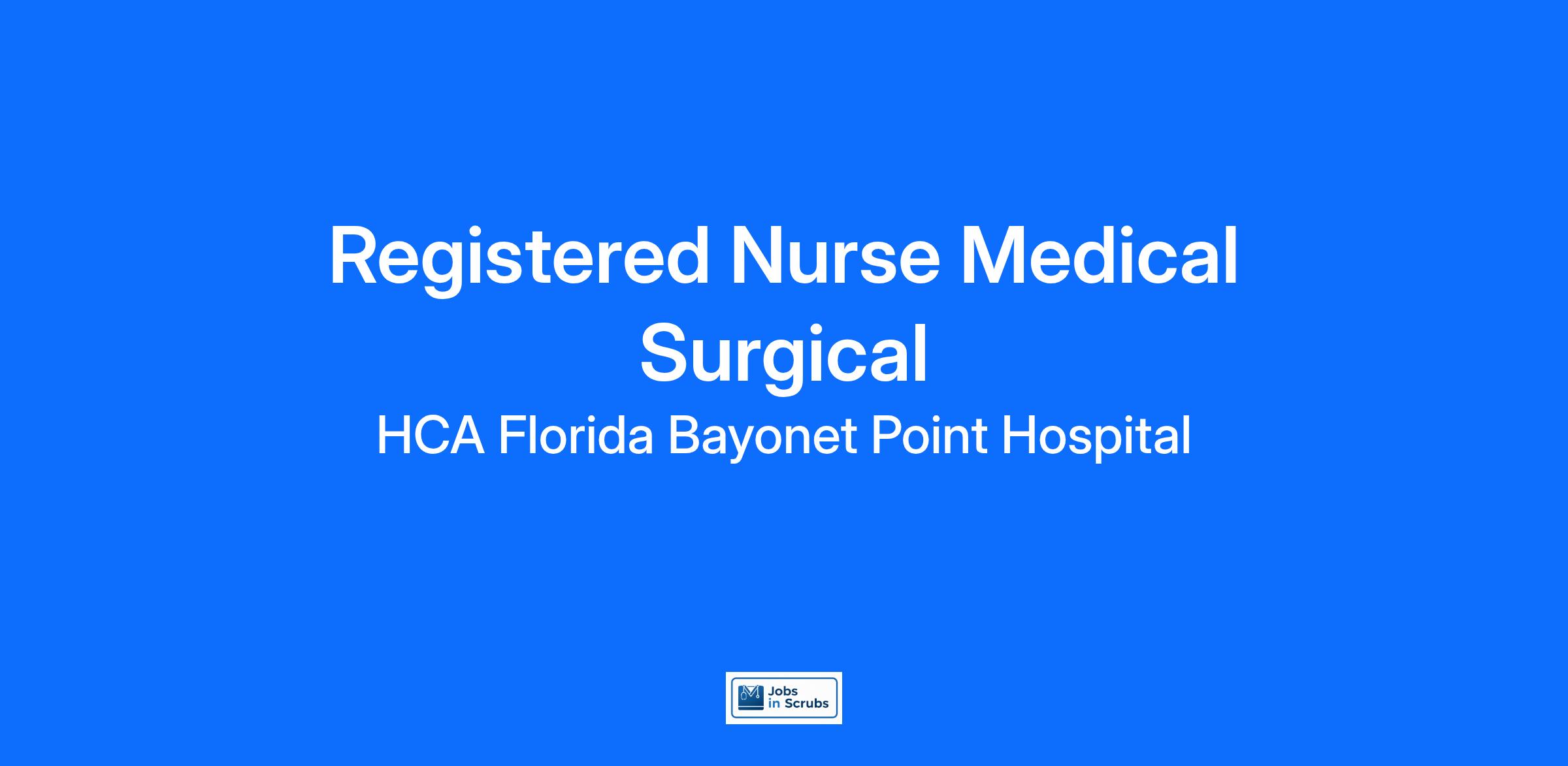Are you looking for a place to deliver excellent care patients deserve? At HCA Florida Bayonet Point Hospital we support our colleagues in their positions. Join our Team as a(an) Registered Nurse Medical Surgical and access programs to assist with every stage of your career.