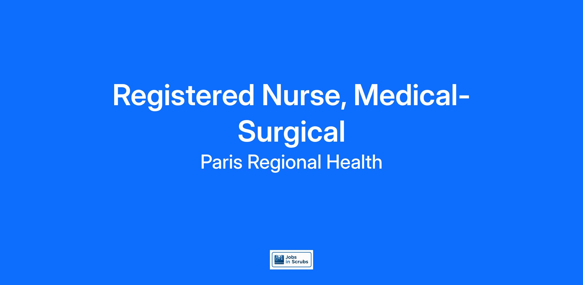At Paris Regional, we are driven by a profound commitment to prioritize your well-being so you can provide exceptional care to others. Here, you're not just valued as an employee, but as a person. As a Registered Nurse (RN) joining our team, you're embracing a vital mission dedicated to making communities healthier. Join us on this meaningful journey where your skills, compassion, and dedication will make a remarkable difference in the lives of those we serve.
