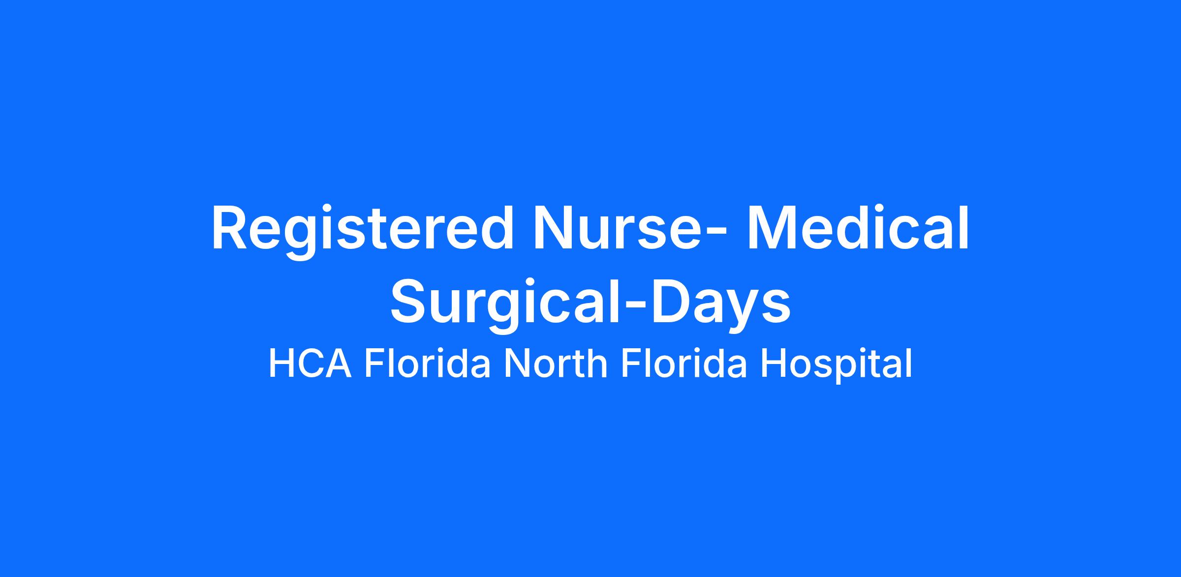 Do you currently have an opportunity to make a real impact with your work? With over 2,000 sites of care and serving over 31.2 million patient interactions every year, nurses at HCA Florida North Florida Hospital have the opportunity to make a real impact. As a(an) Registered Nurse- Medical Surgical-Days you can be a part of change.
