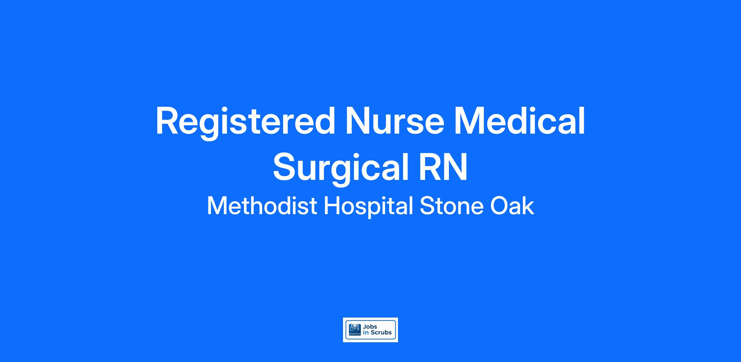 Do you want to join an organization that invests in you as a(an) Registered Nurse Medical Surgical RN? At Methodist Hospital Stone Oak, you come first. HCA Healthcare has committed up to $300 million in programs to support our incredible team members over the course of three years.